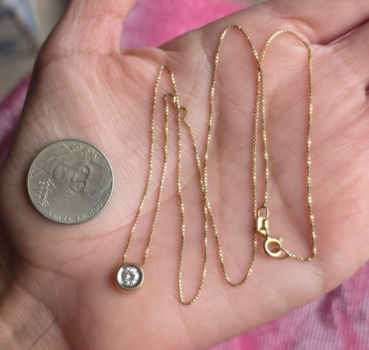 Lovely 14k Gold Bezel Set Round 1/3ct Diamond Slider Pendant Necklace With 20" Box Chain