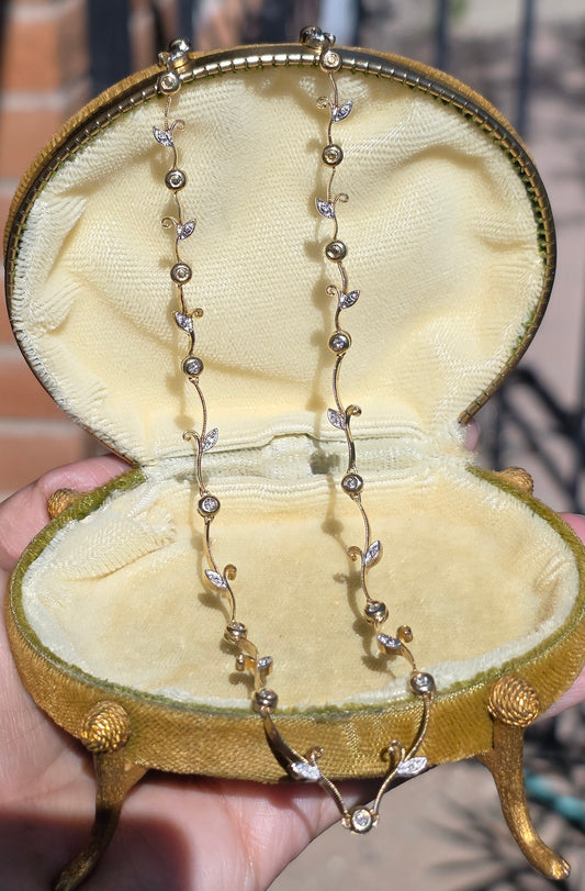 Stunning One-Of-A-Kind Floral Bezel Diamond 10k Gold Collar Style Necklace 16"