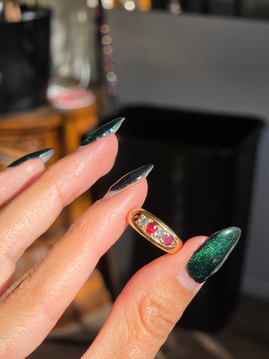Antique Style 18k Gold OMC Diamond Garnet & Ruby Ring Size 4.5