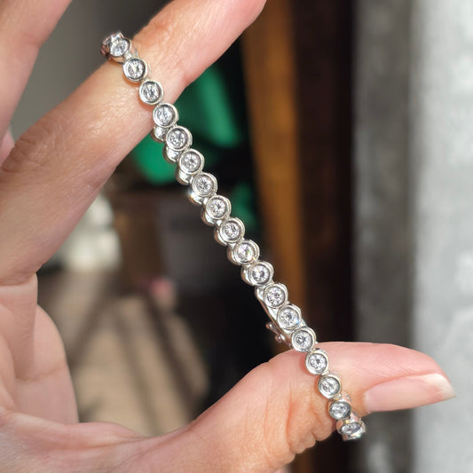 Gorgeous 4.50TCW Diamond Bezel Set 14k White Gold Solid Hefty Tennis Bracelet 7"