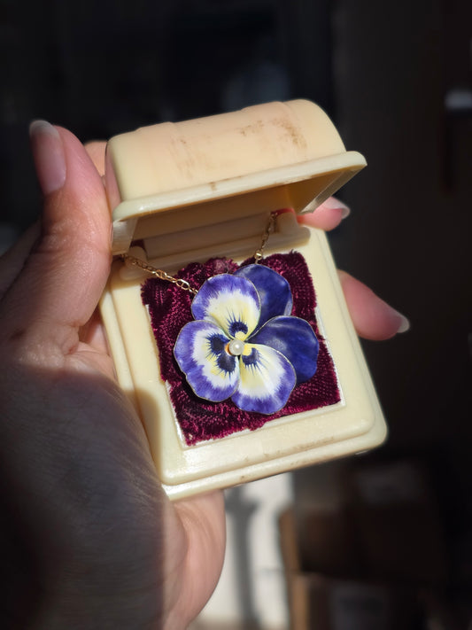 Stunning Vintage Purple Enamel and Pearl Pansy Solid 14k Gold Brooch / Pin (NO CHAIN)
