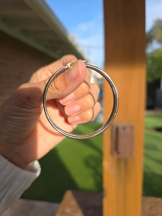 Classic 14k White Gold 2" Large Hoops Hollow Style (Slightly Dented)