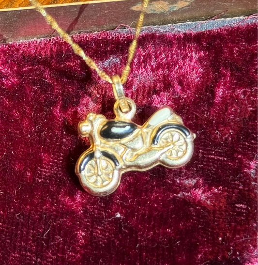Vintage Italian 3D Puffy 10k Gold Enamel Motorcycle Charm (NO CHAIN)