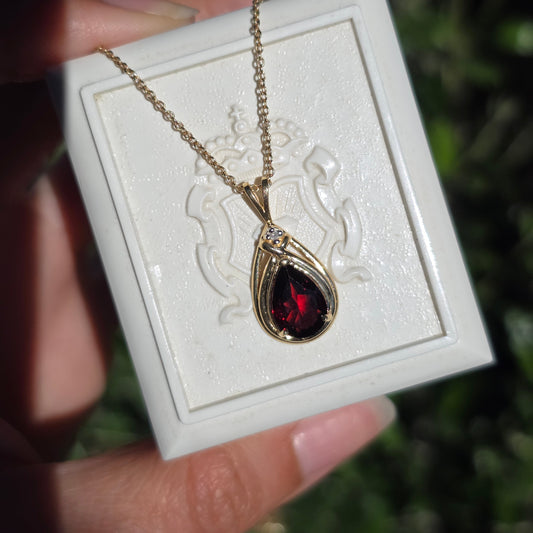 Pretty 10k Gold 1.5ctw Pear Cut Garnet and Diamond Pendant (NO CHAIN)