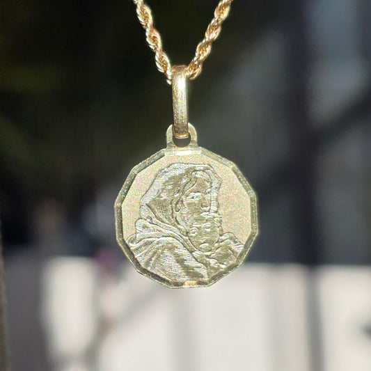 Classic Vintage 14k Engraved Madonna and Child Octagonal Pendant Beveled Edge (NO CHAIN)
