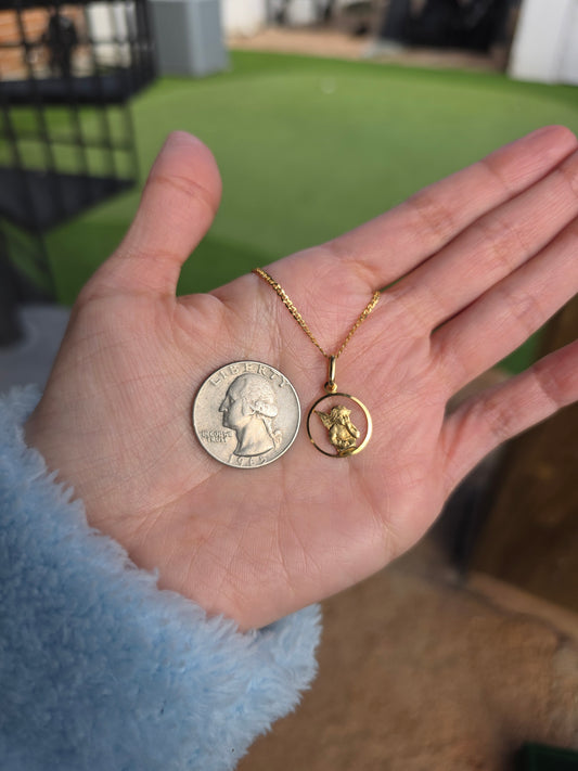 14k Gold Italian Guardian Angel Cherub Pendant (NO CHAIN)