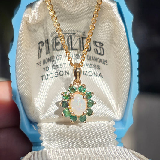 Beautiful 10k Gold .65ctw Opal Emerald Halo Pendant (NO CHAIN)
