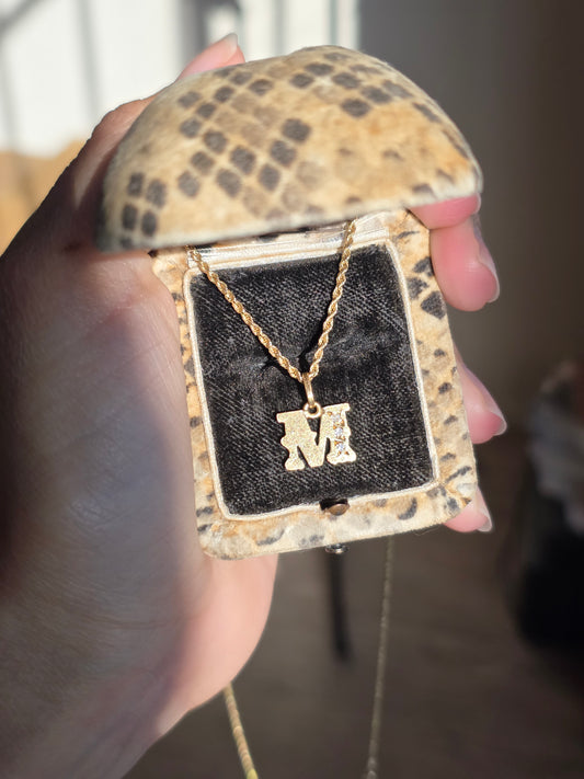 Awesome 18k Gold Block Font M Initial Diamond Accented Pendant (NO CHAIN)