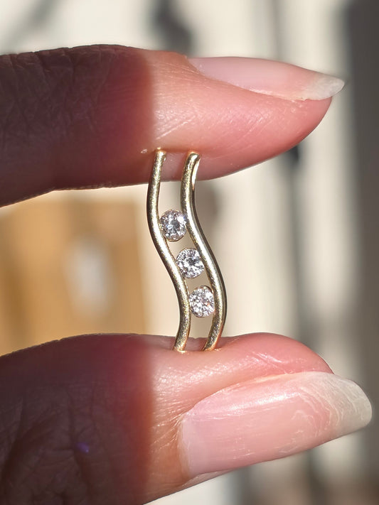 Unique 14k Gold 3 Diamond Wavy Ladder Modernist Style Pendant (NO CHAIN)