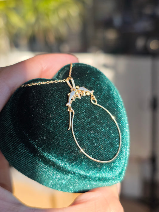 Pretty 14k Gold Two Dolphins Large Charm Holder (NO CHAIN)