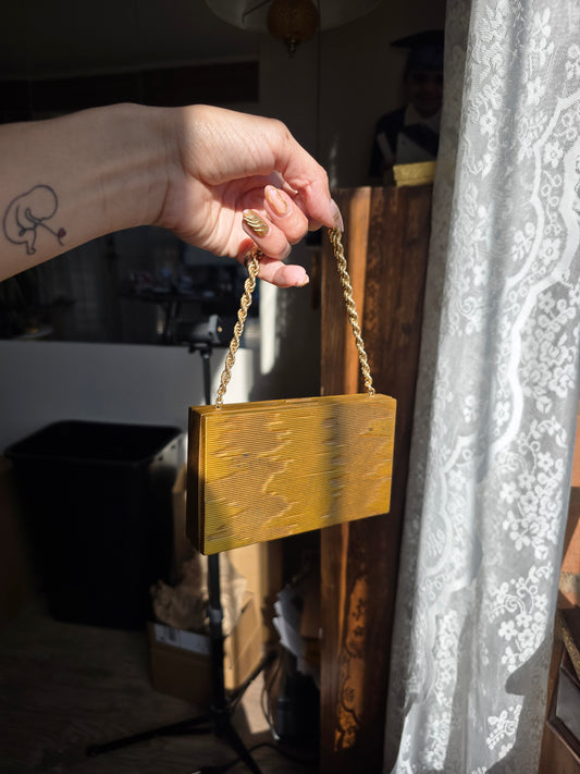 Vintage Evans Gold Toned Metal Compact/ Makeup Handbag Wristlet Solid Rope Chain Handle