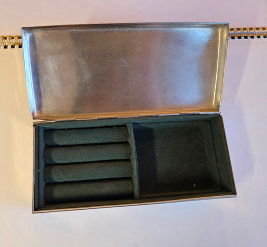 Gump's Silver Plate Vintage Rectangular Jewelry Box With Ring Tray Initials TBA