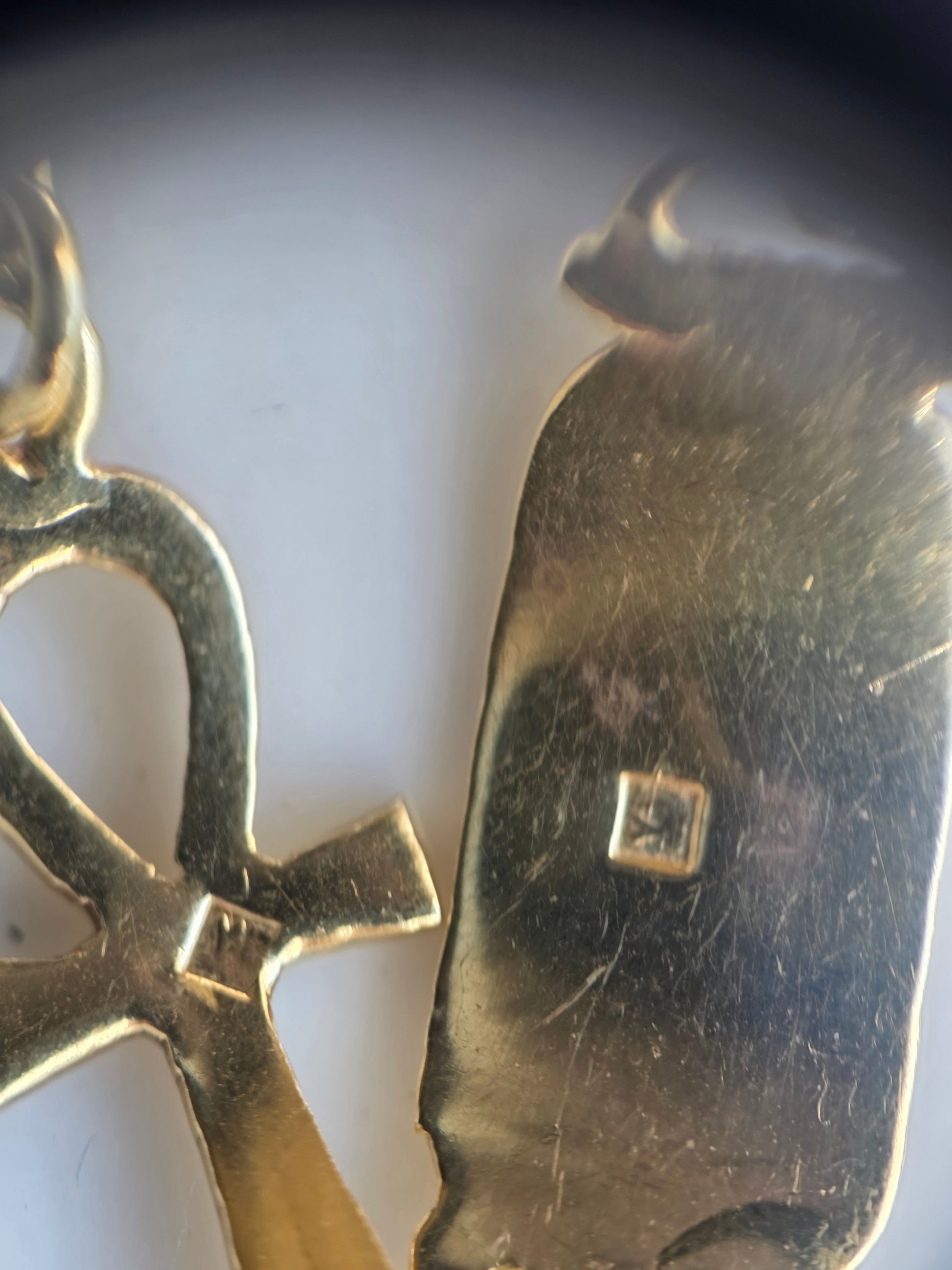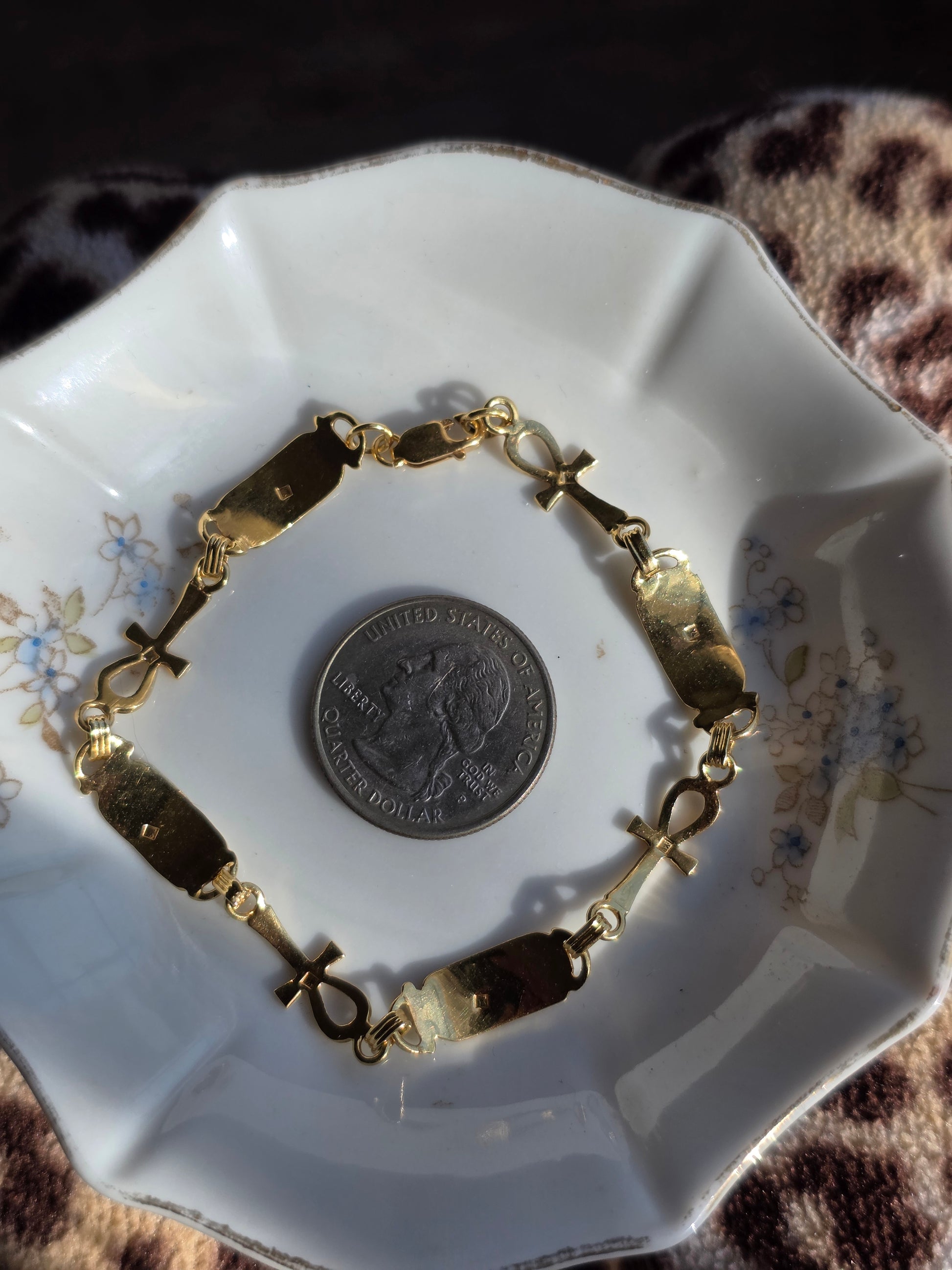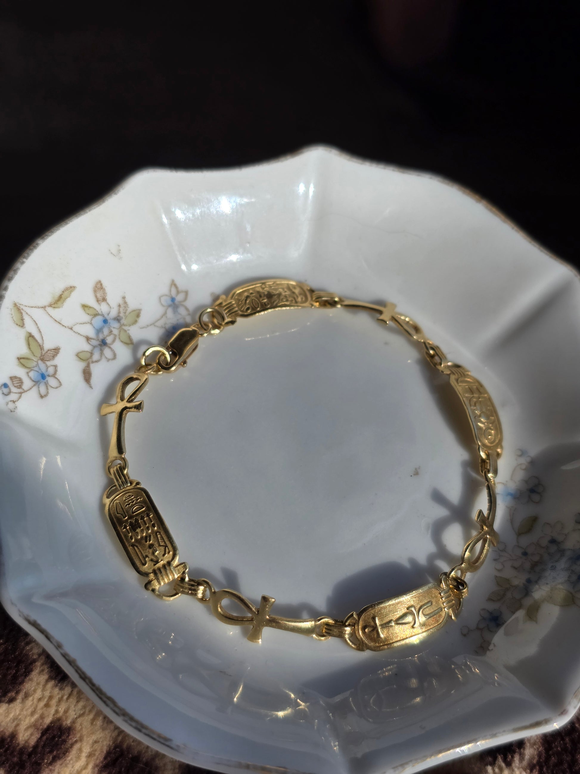 Solid 18k Gold Egyptian Cartouche & Ankh Cross Panel Bracelet 7.5"