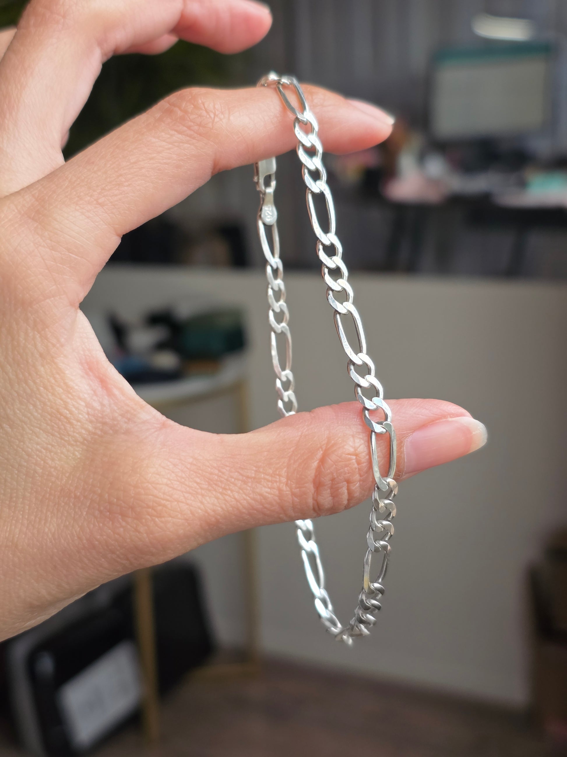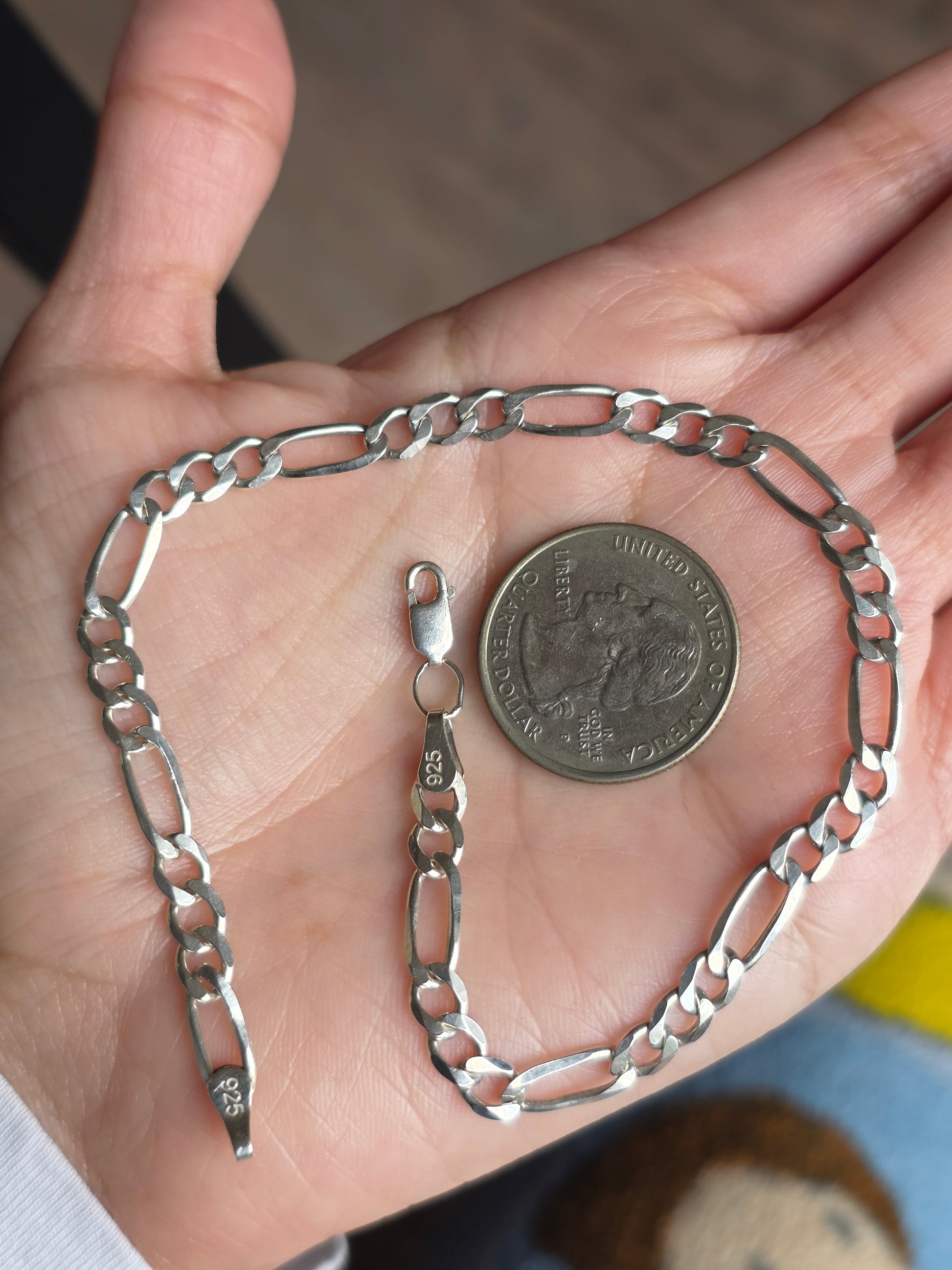 925 Sterling Silver Figaro 5mm wide Anklet 10"