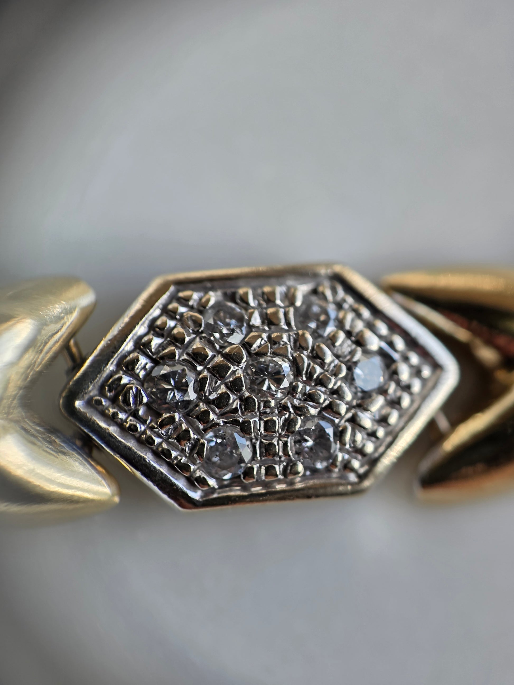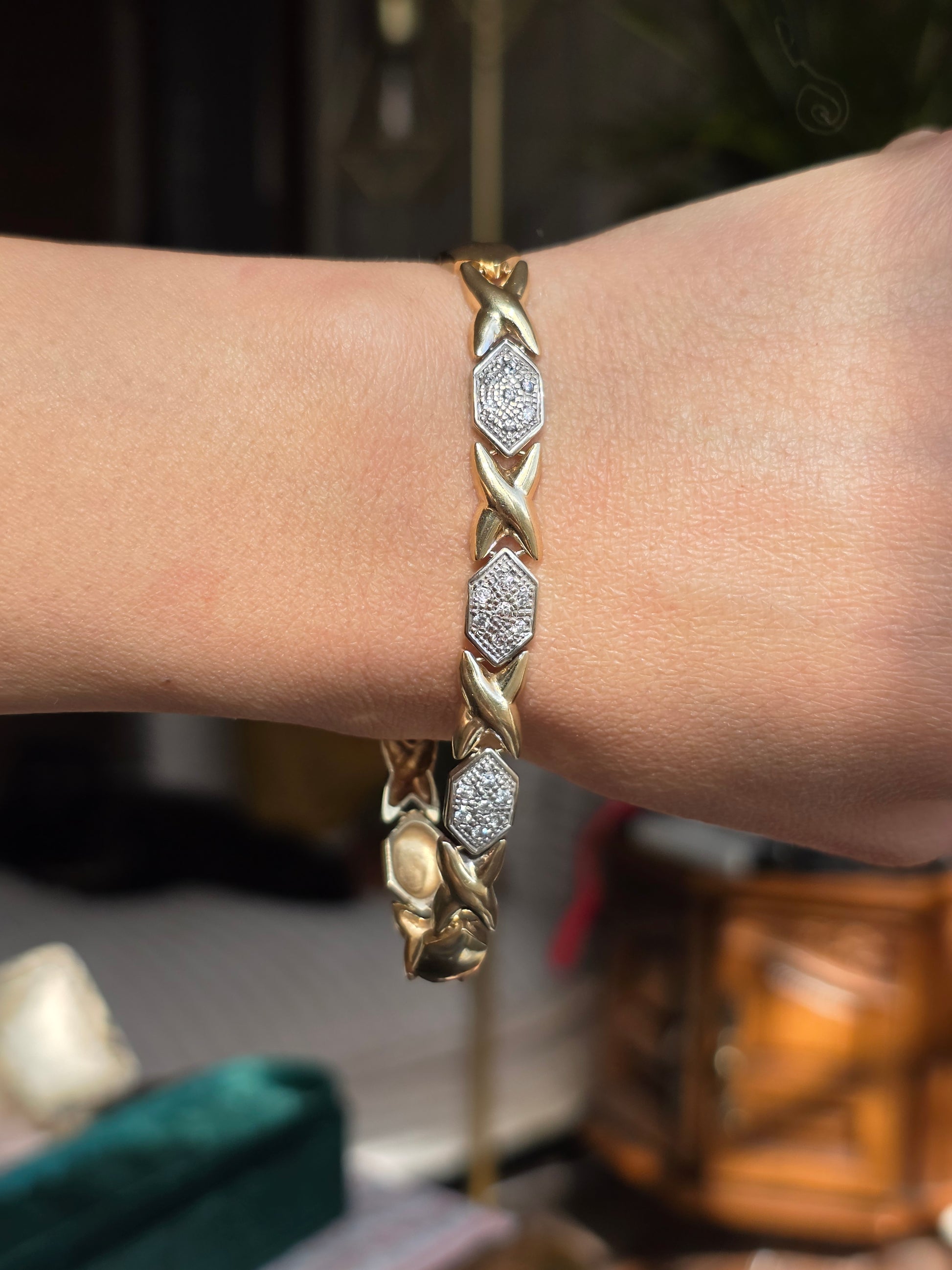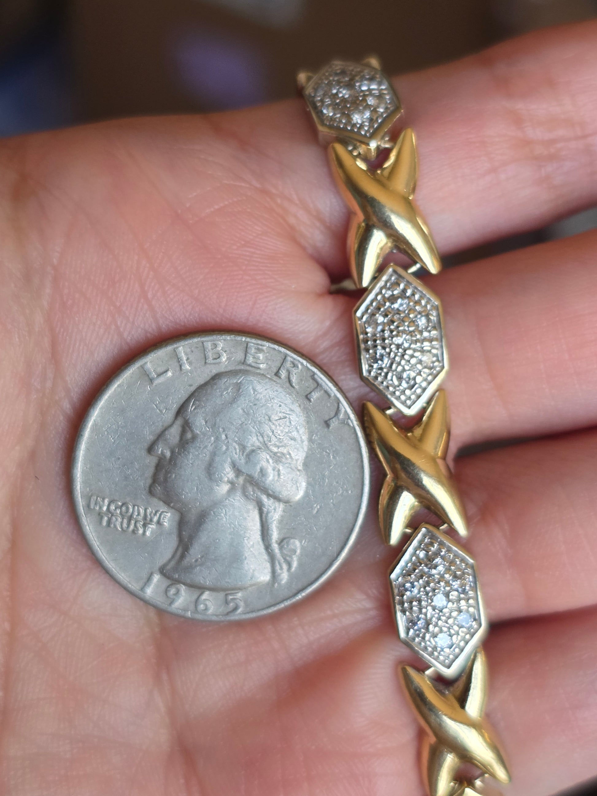 Amazing Two Toned 14k X Link Elongated Hexagon White Gold and Diamond Bracelet 7.5"