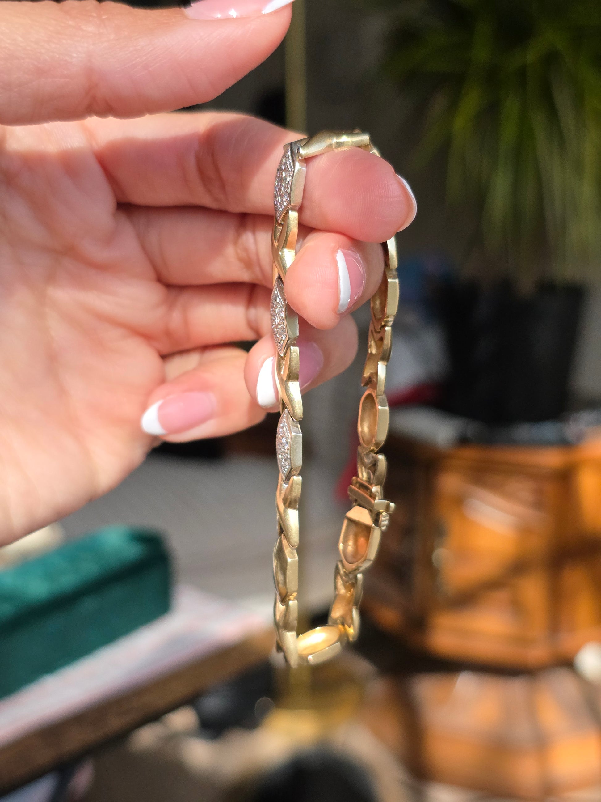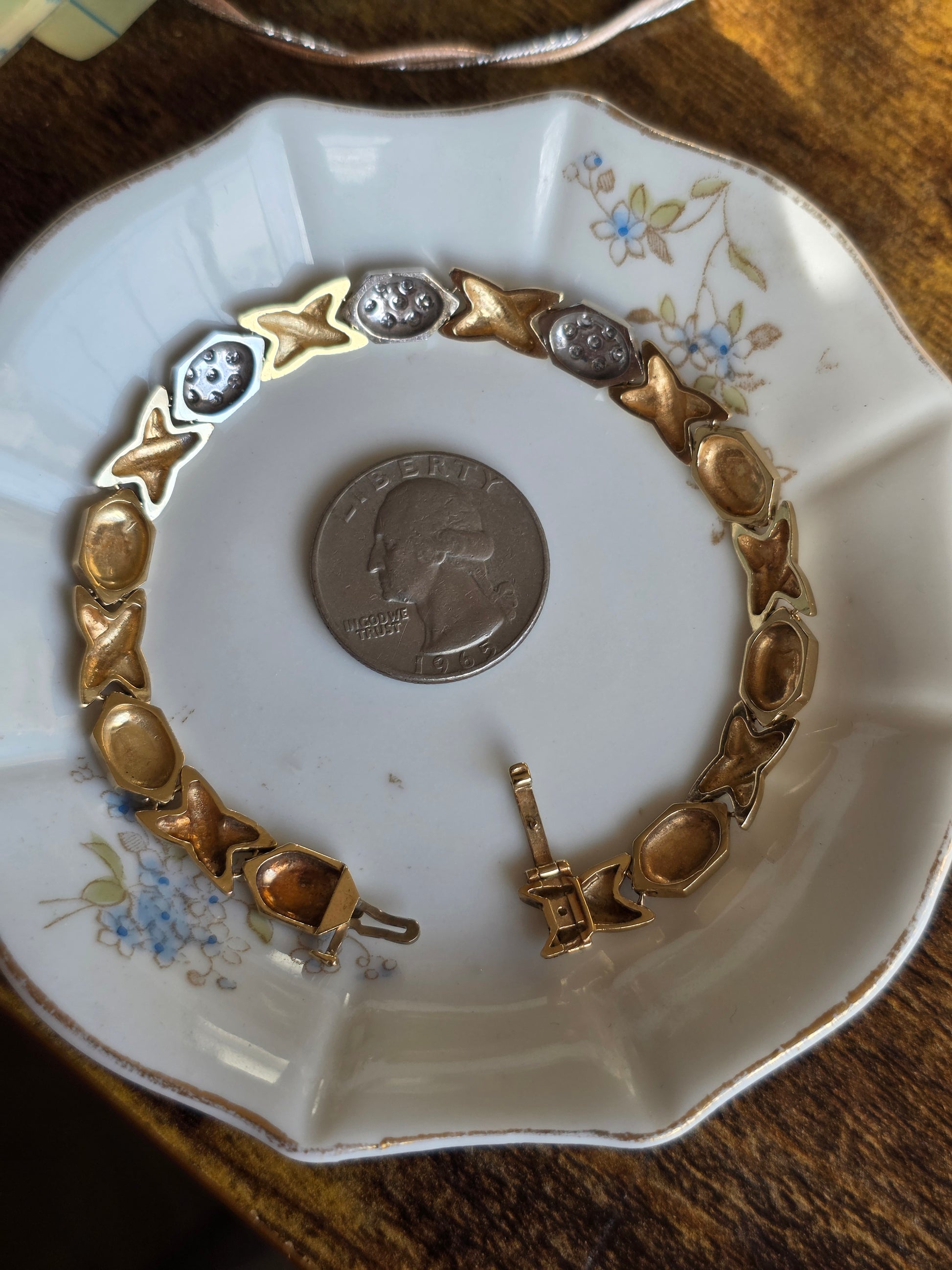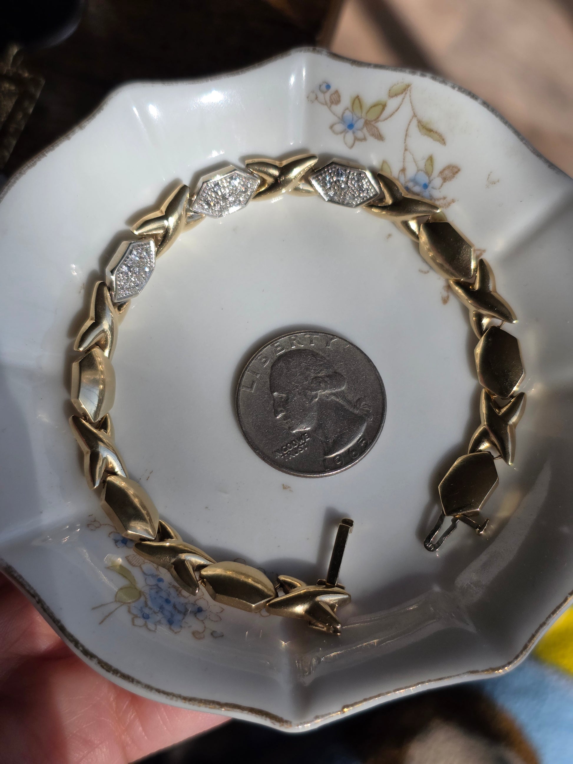 Amazing Two Toned 14k X Link Elongated Hexagon White Gold and Diamond Bracelet 7.5"