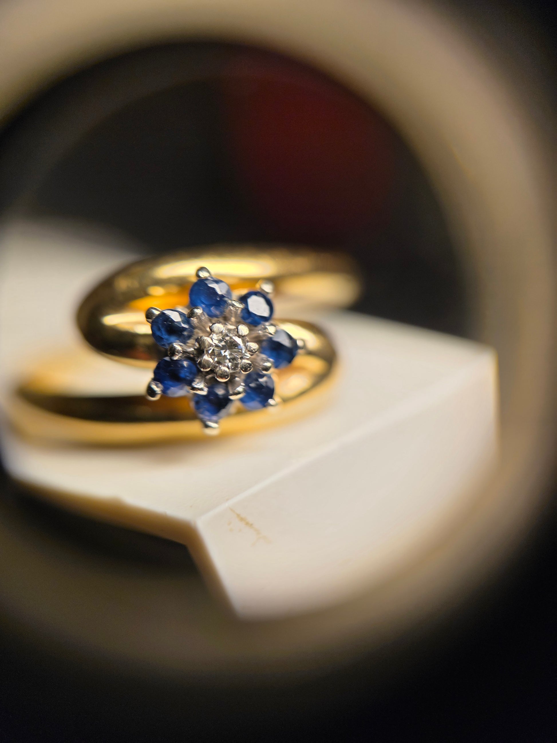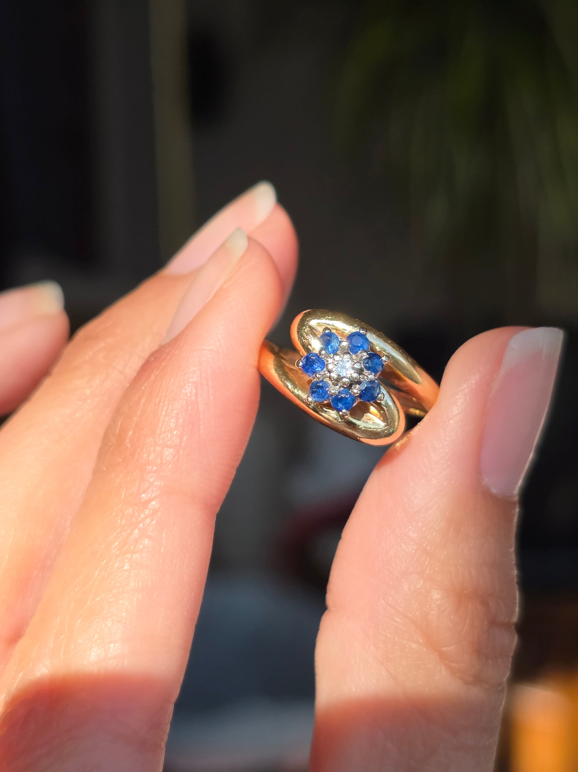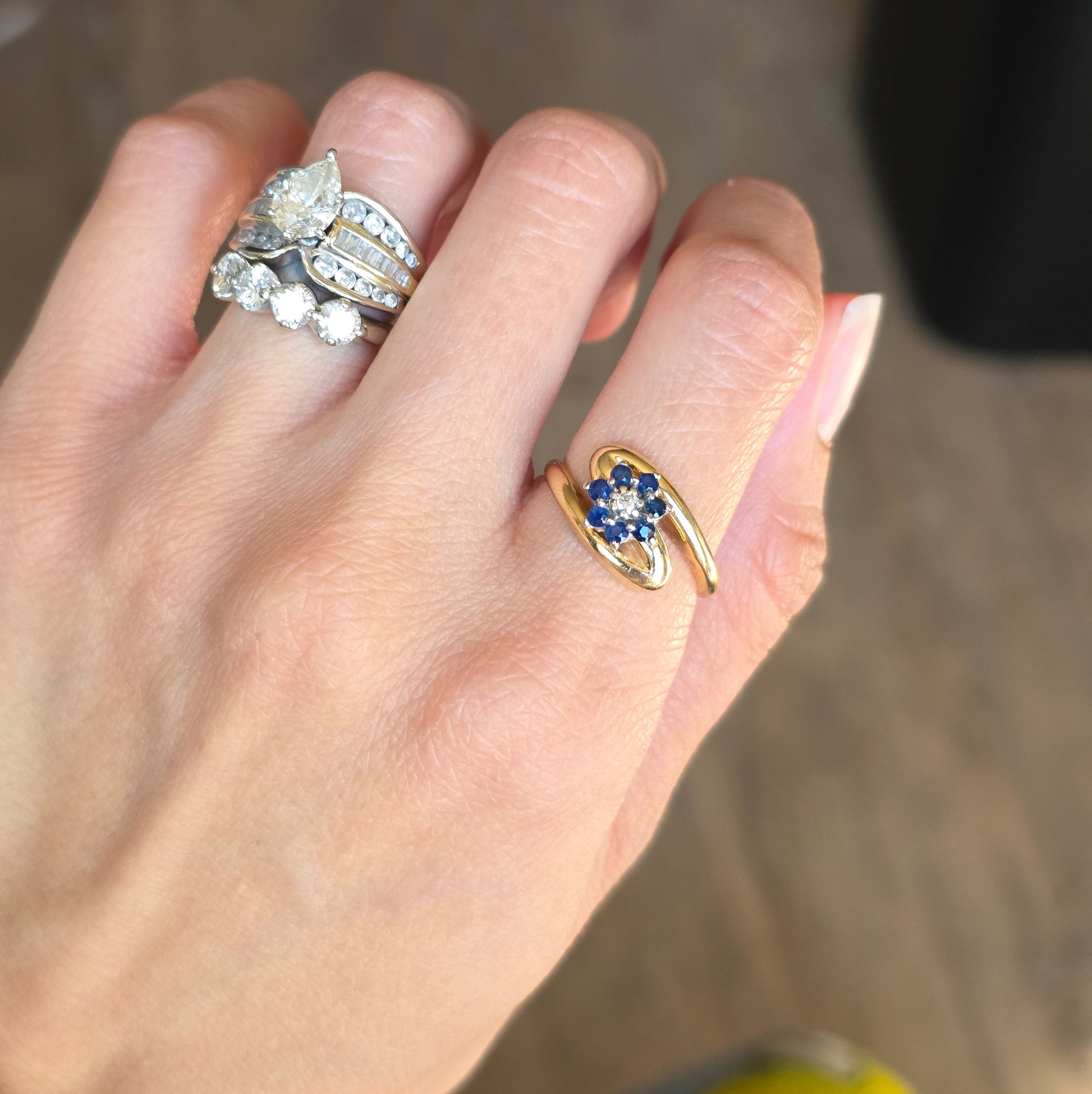 Beautiful 14k Gold Sapphire & Diamond Flower Ring Size 6.25