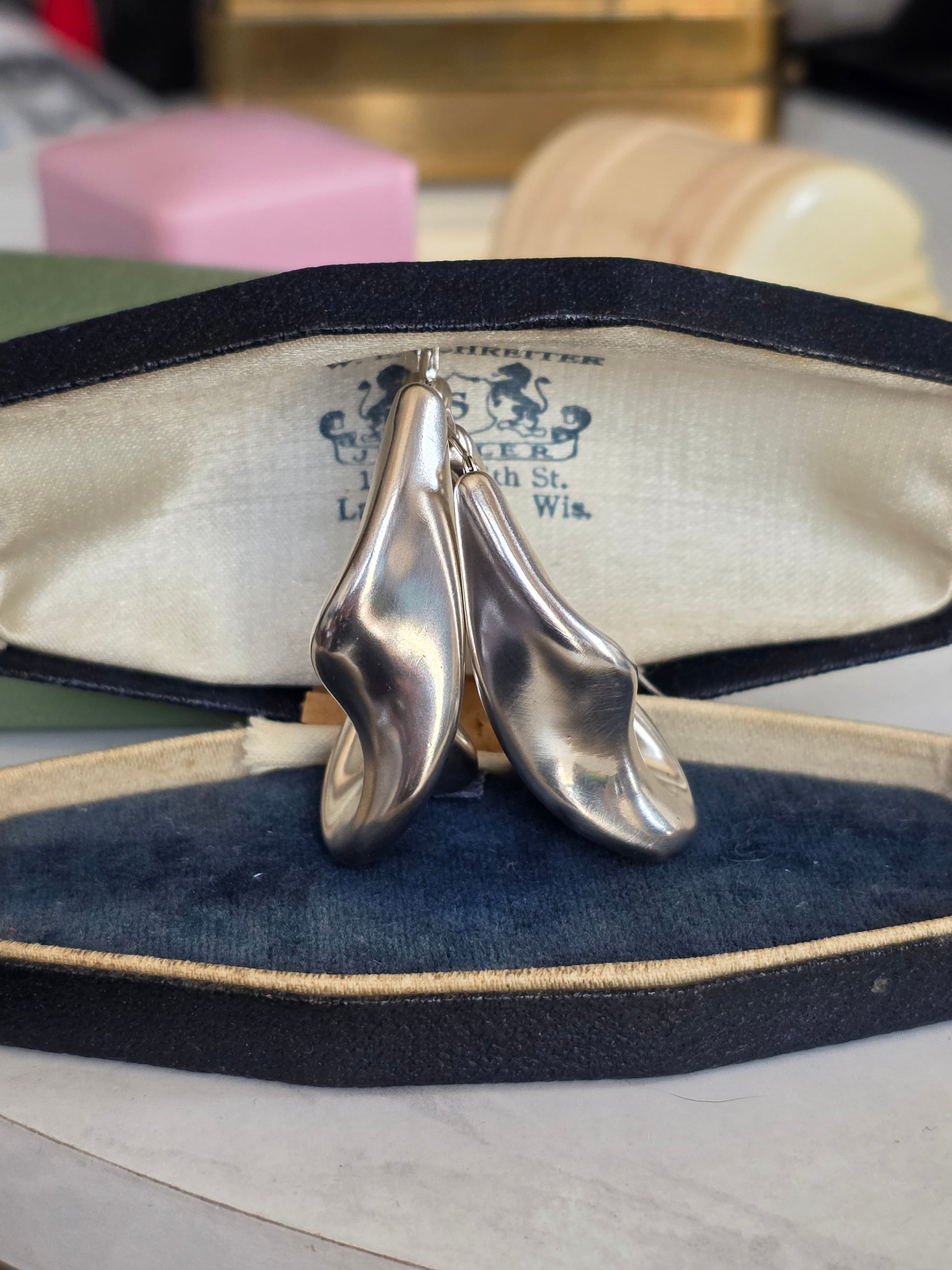 Bold Sterling Silver Modernist Freeform Hoop Earrings