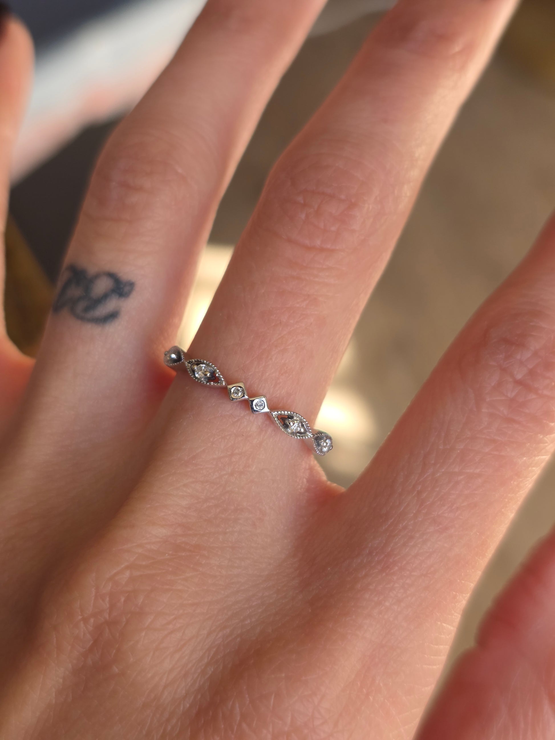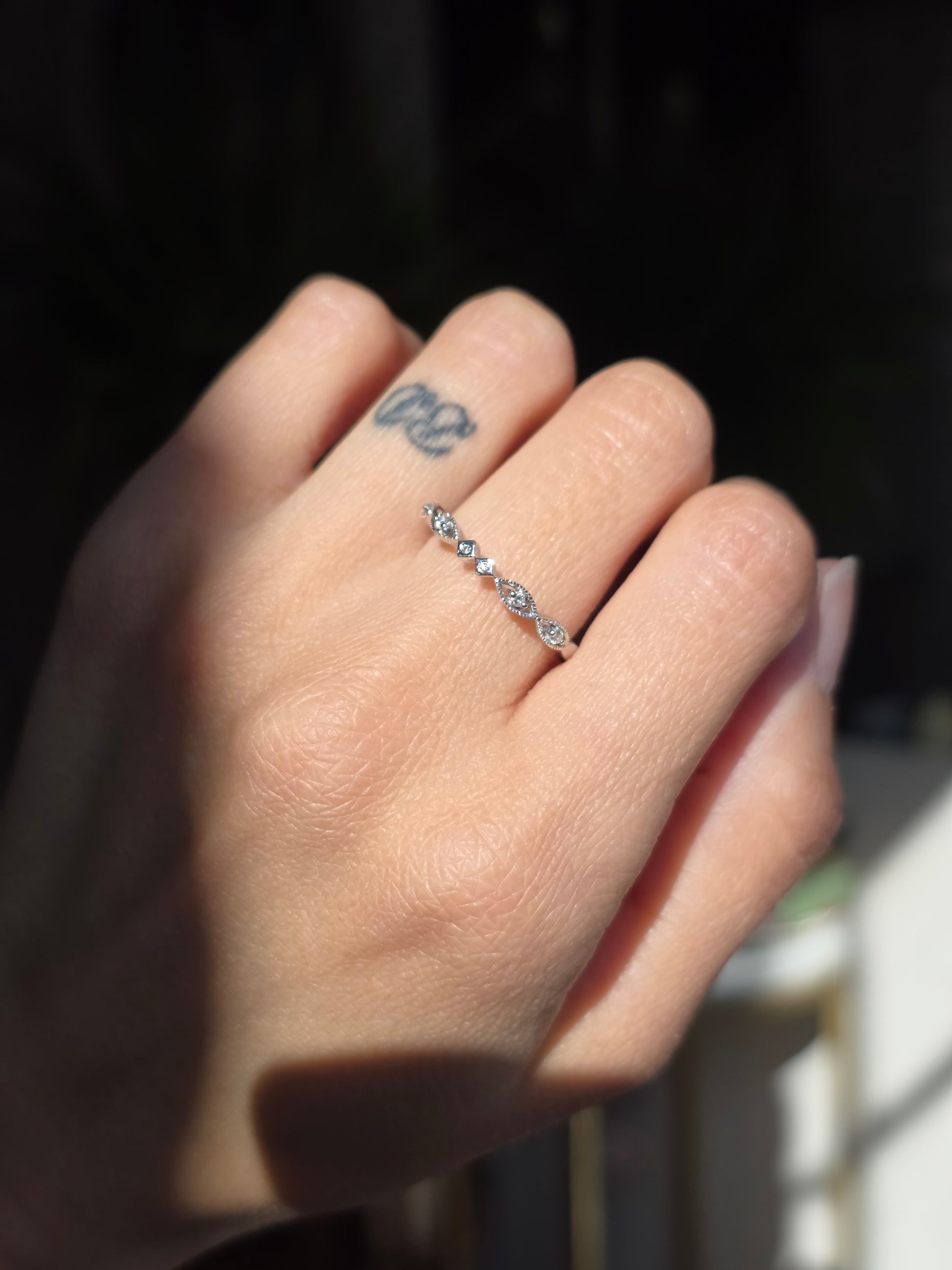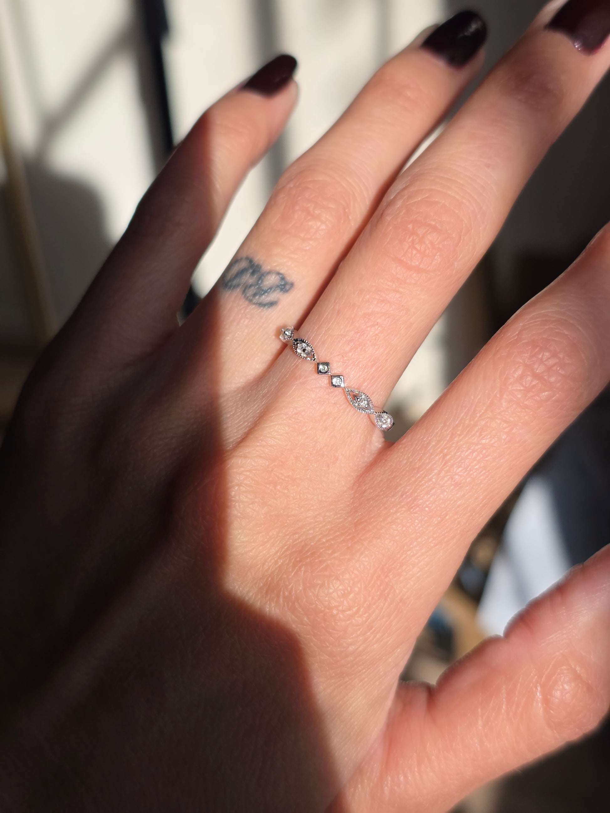 Elegant 14k White Gold Dainty Diamond Stacker Band Size 7.25