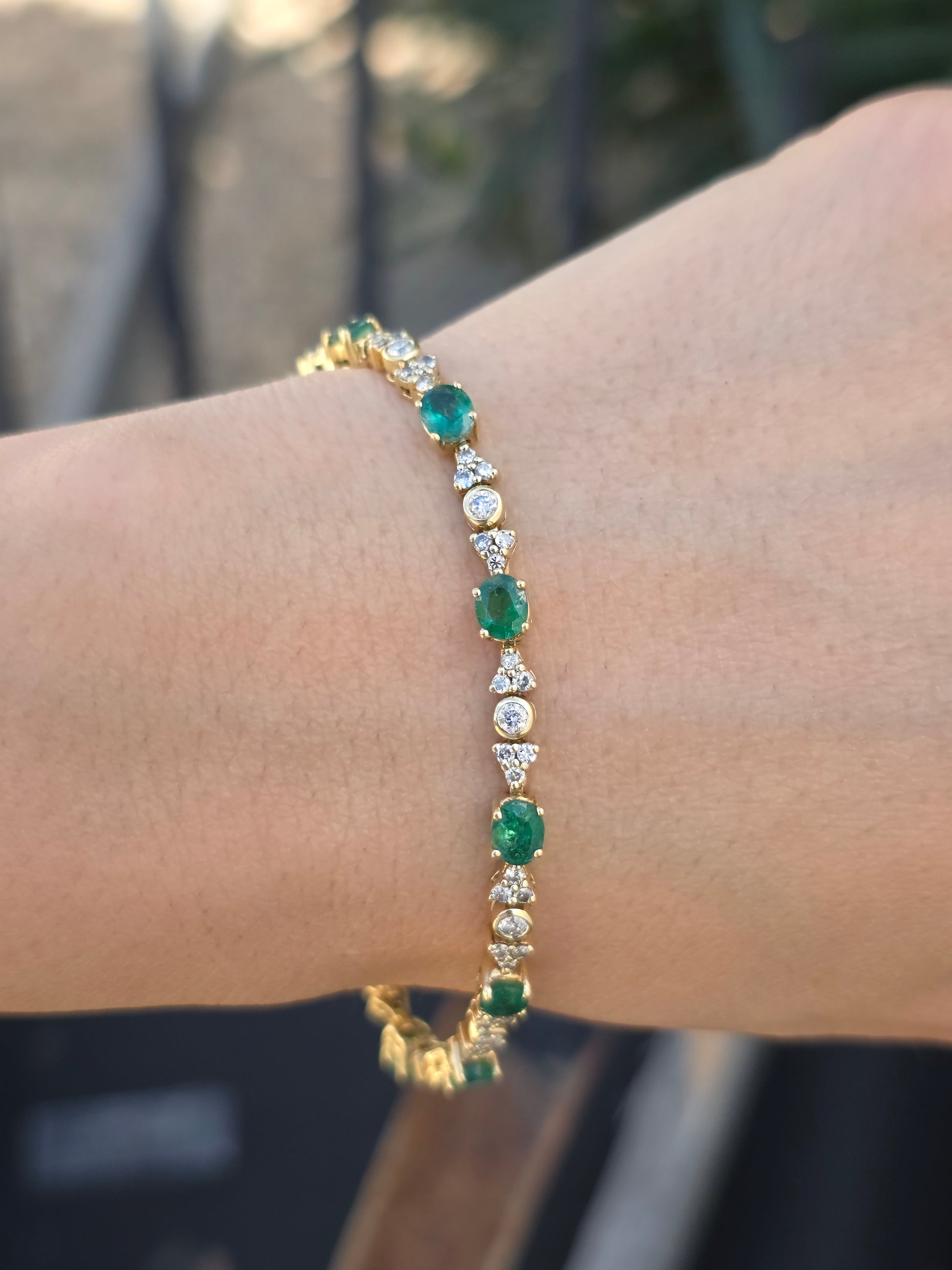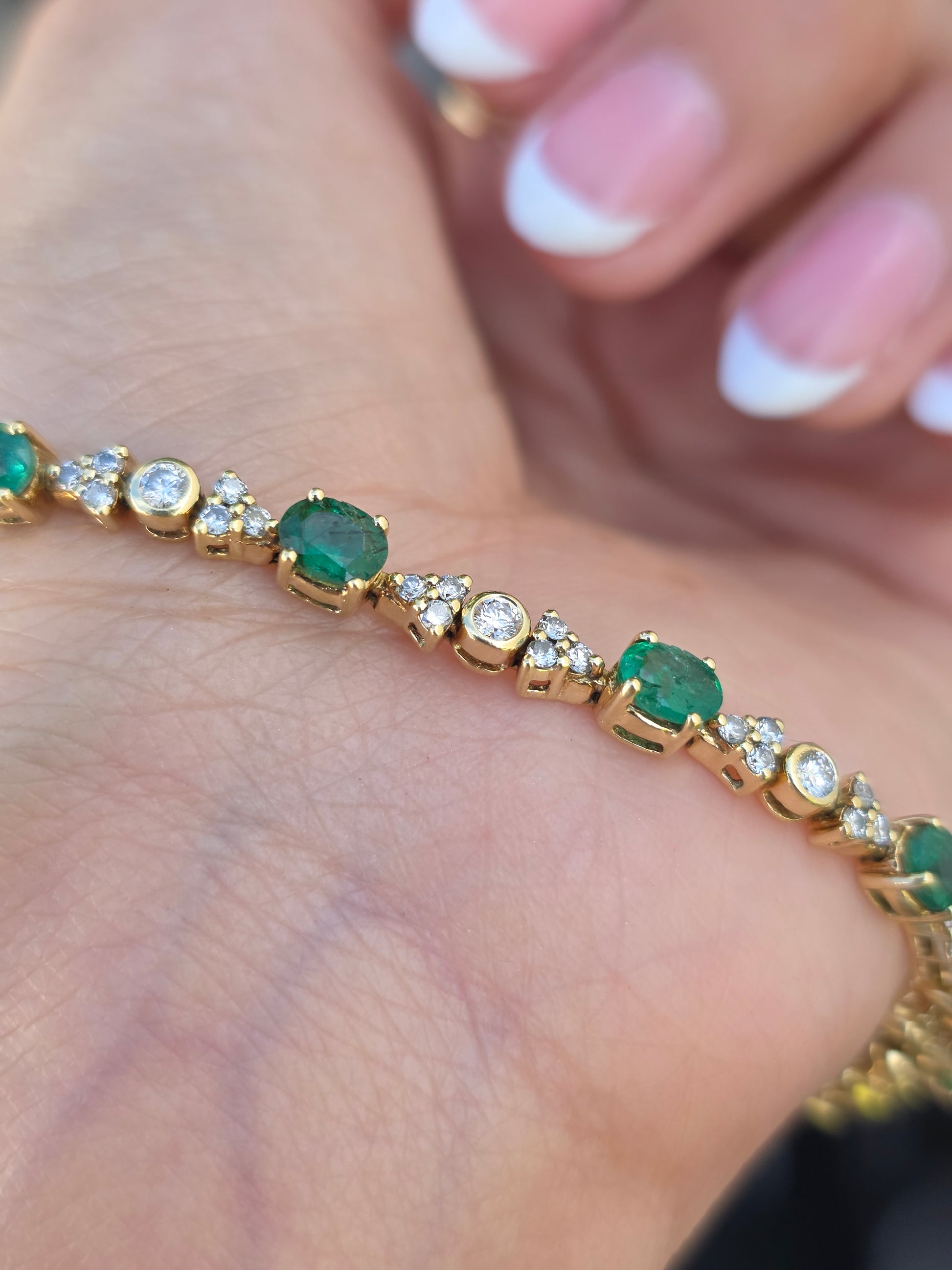 Gorgeous 18k Gold 4.85TCW Emerald Diamond Tennis Bracelet 7"