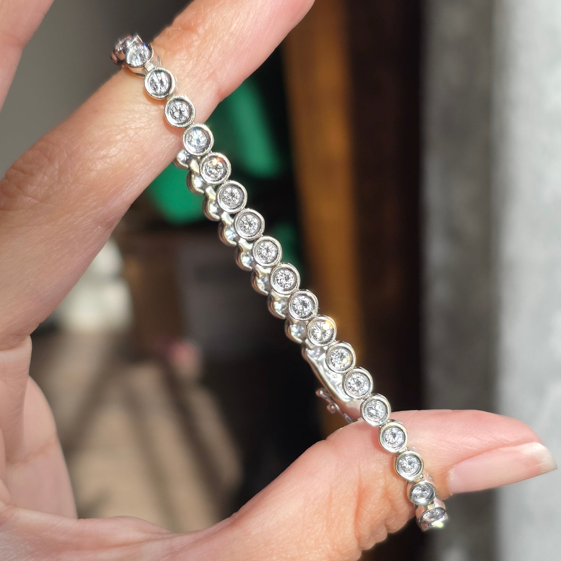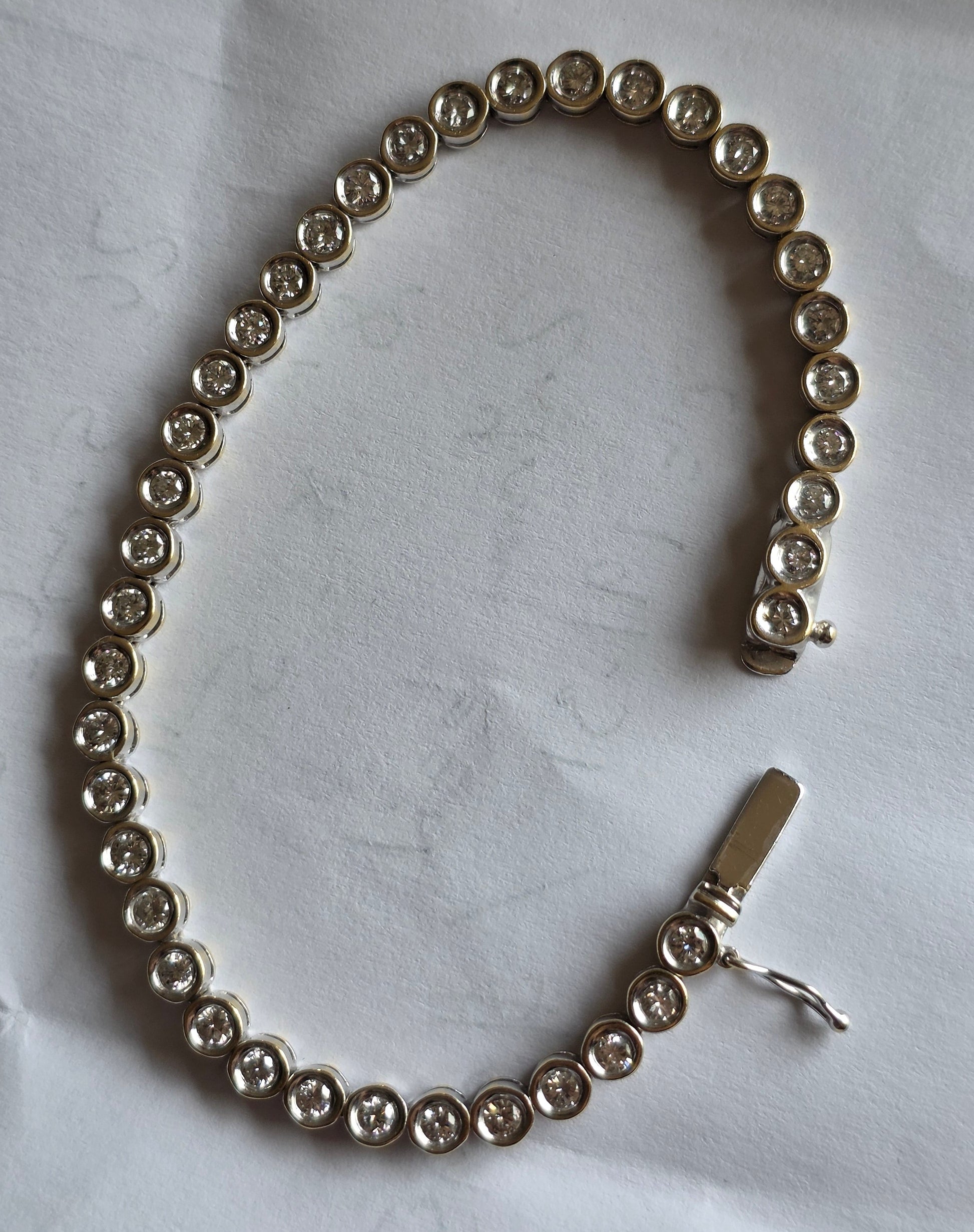 Gorgeous 4.50TCW Diamond Bezel Set 14k White Gold Solid Hefty Tennis Bracelet 7"