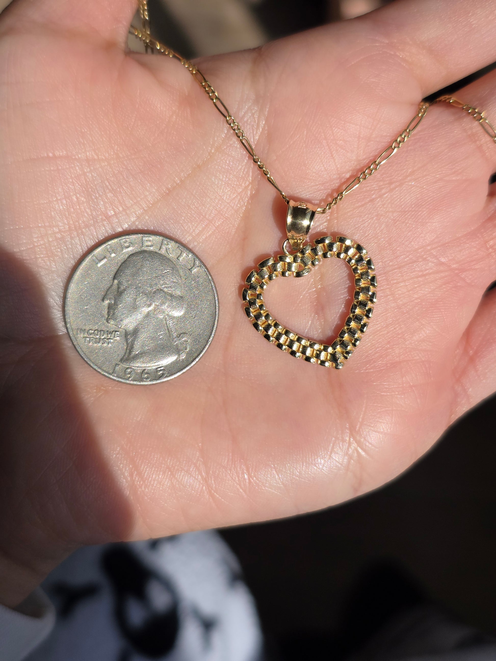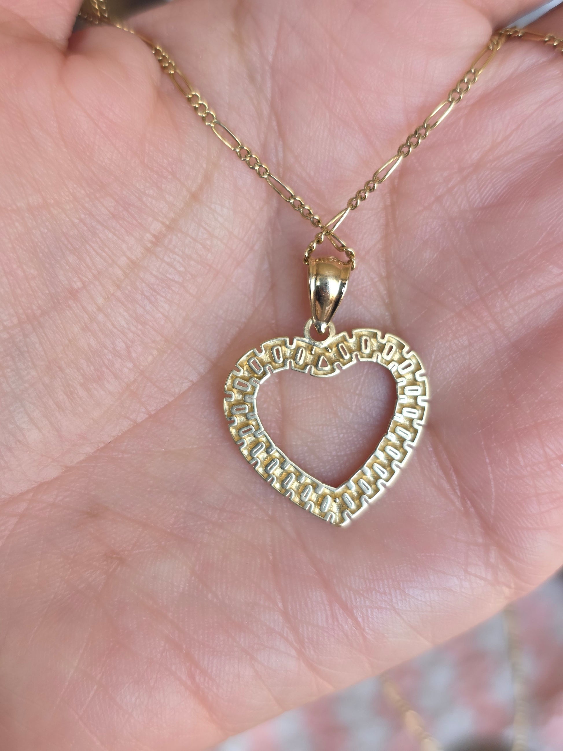 Lovely 10k Gold Textured Panther Link Heart Cut Out Pendant (NO CHAIN)