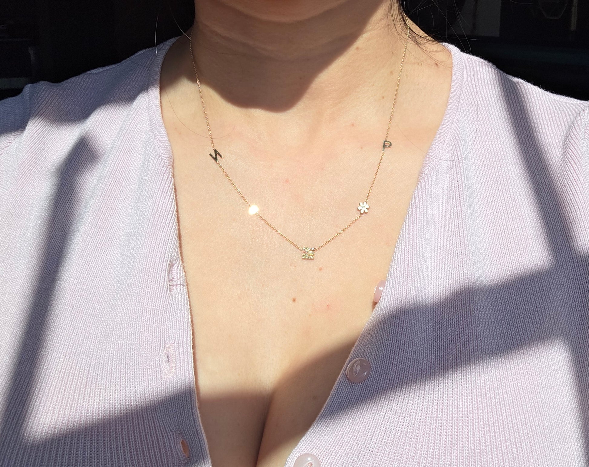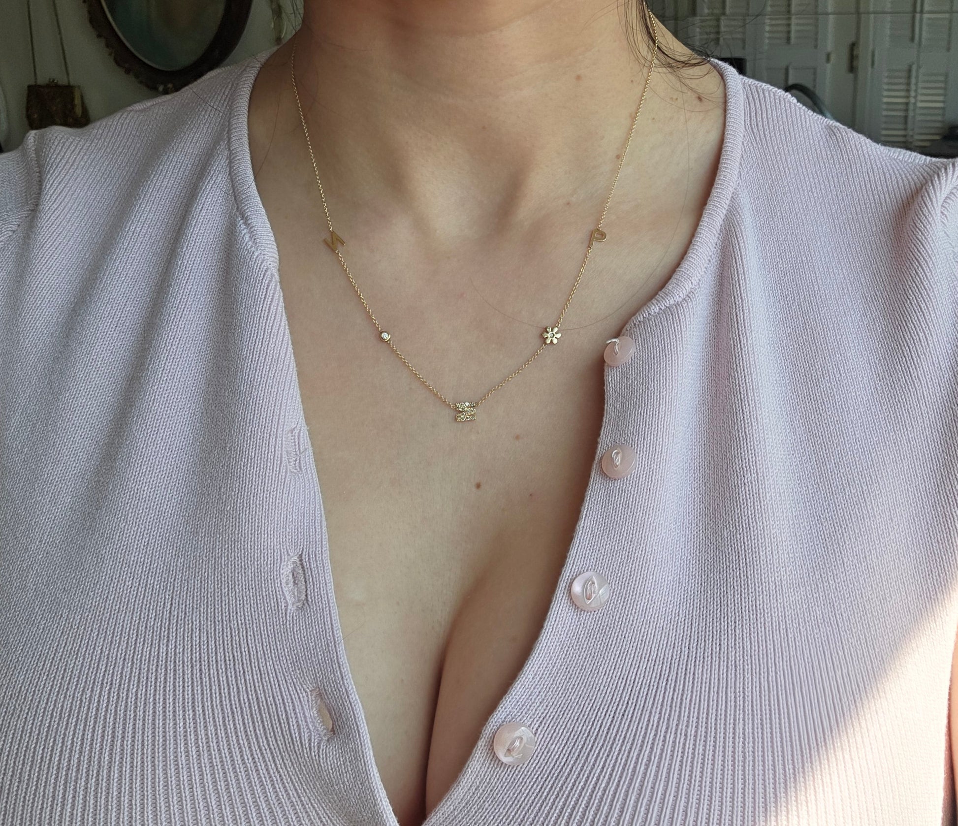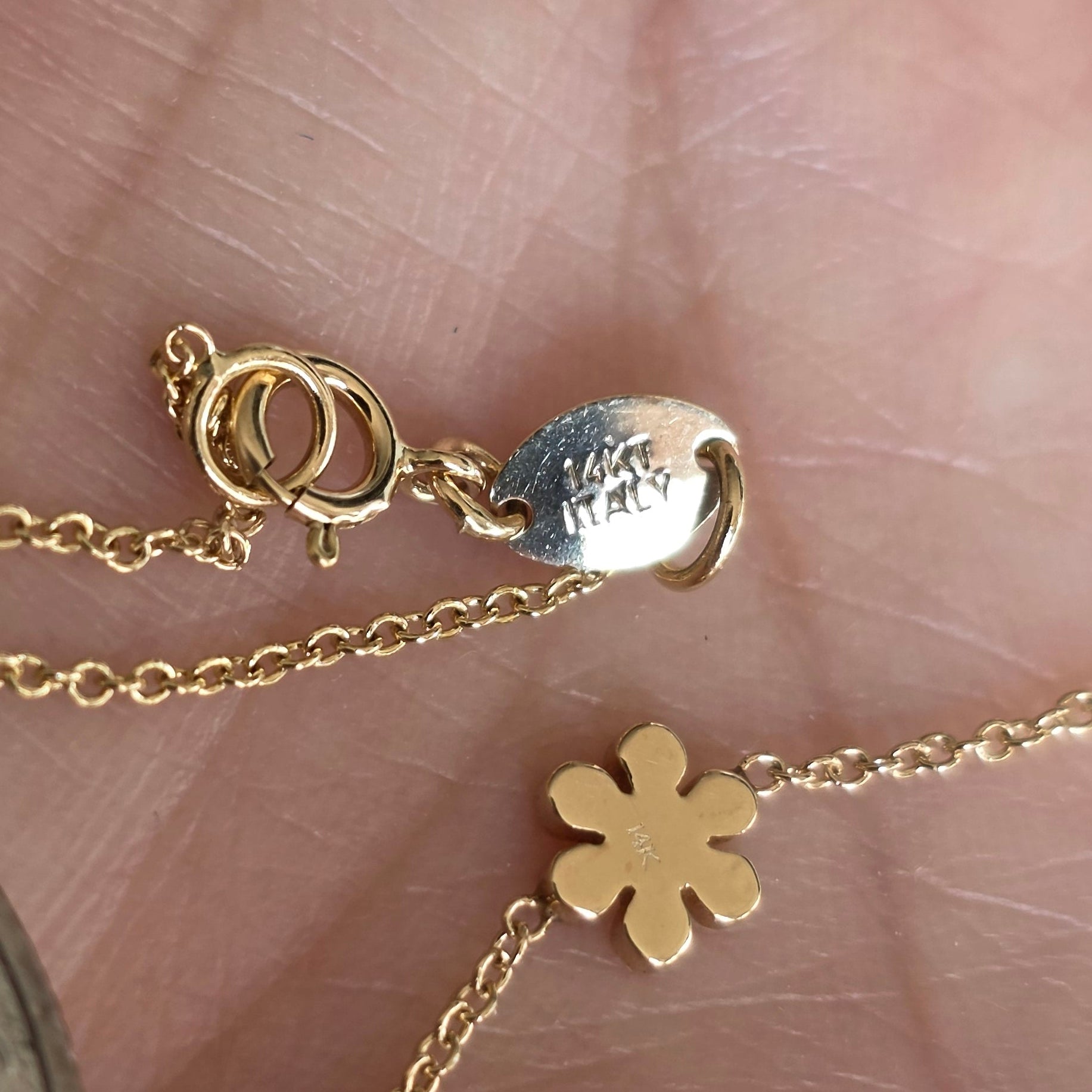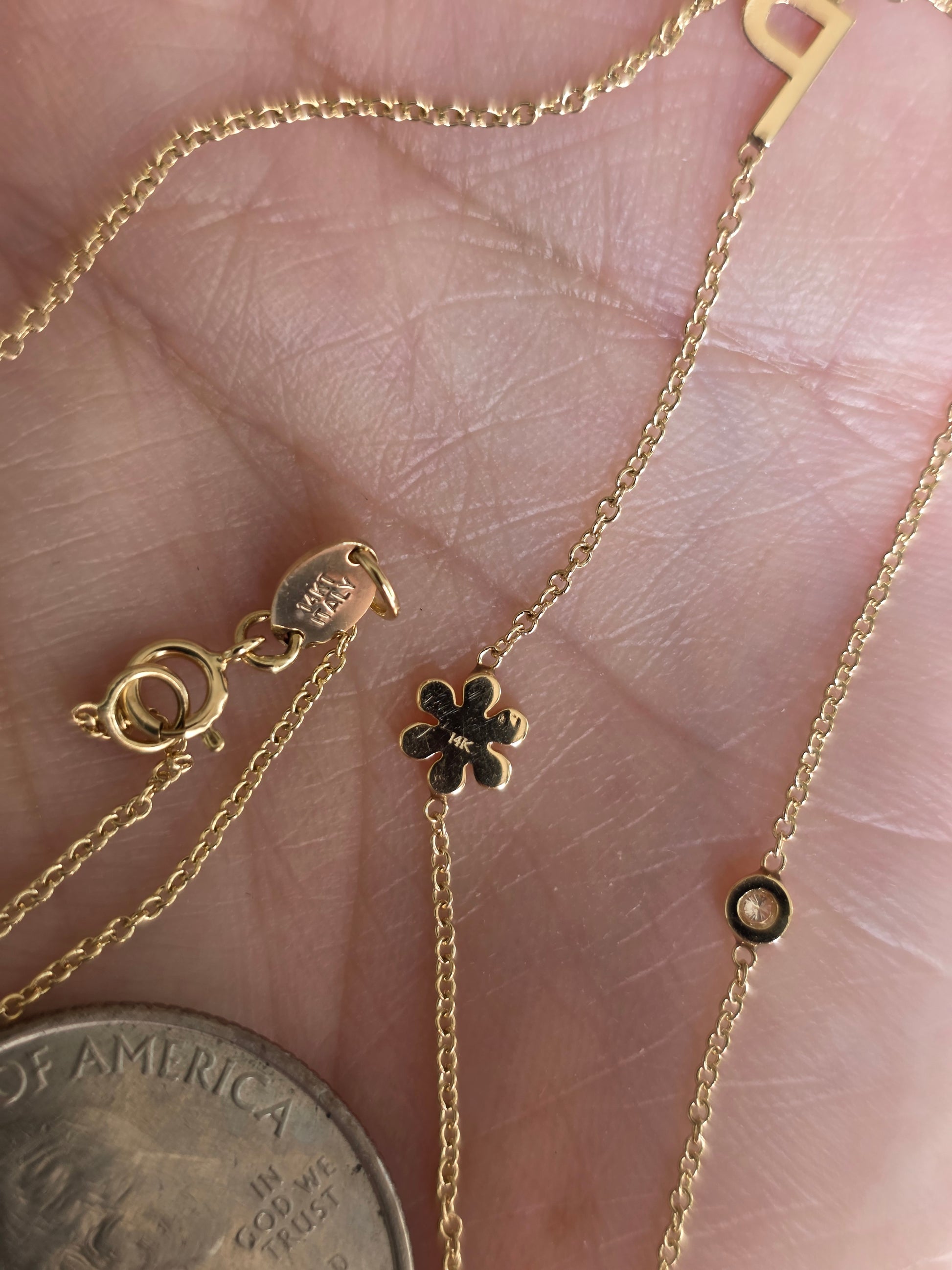 Lovely 14k Gold "NMP" Initial Station Diamond Flower / Bezel Diamond Necklace 16"/18"