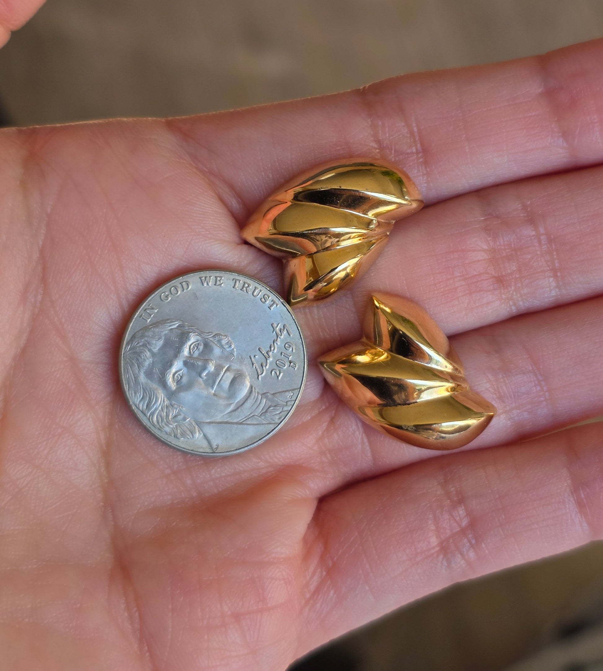 Lovely 14k Gold Vintage Statement Croissant/Fan Style Fashion Earrings