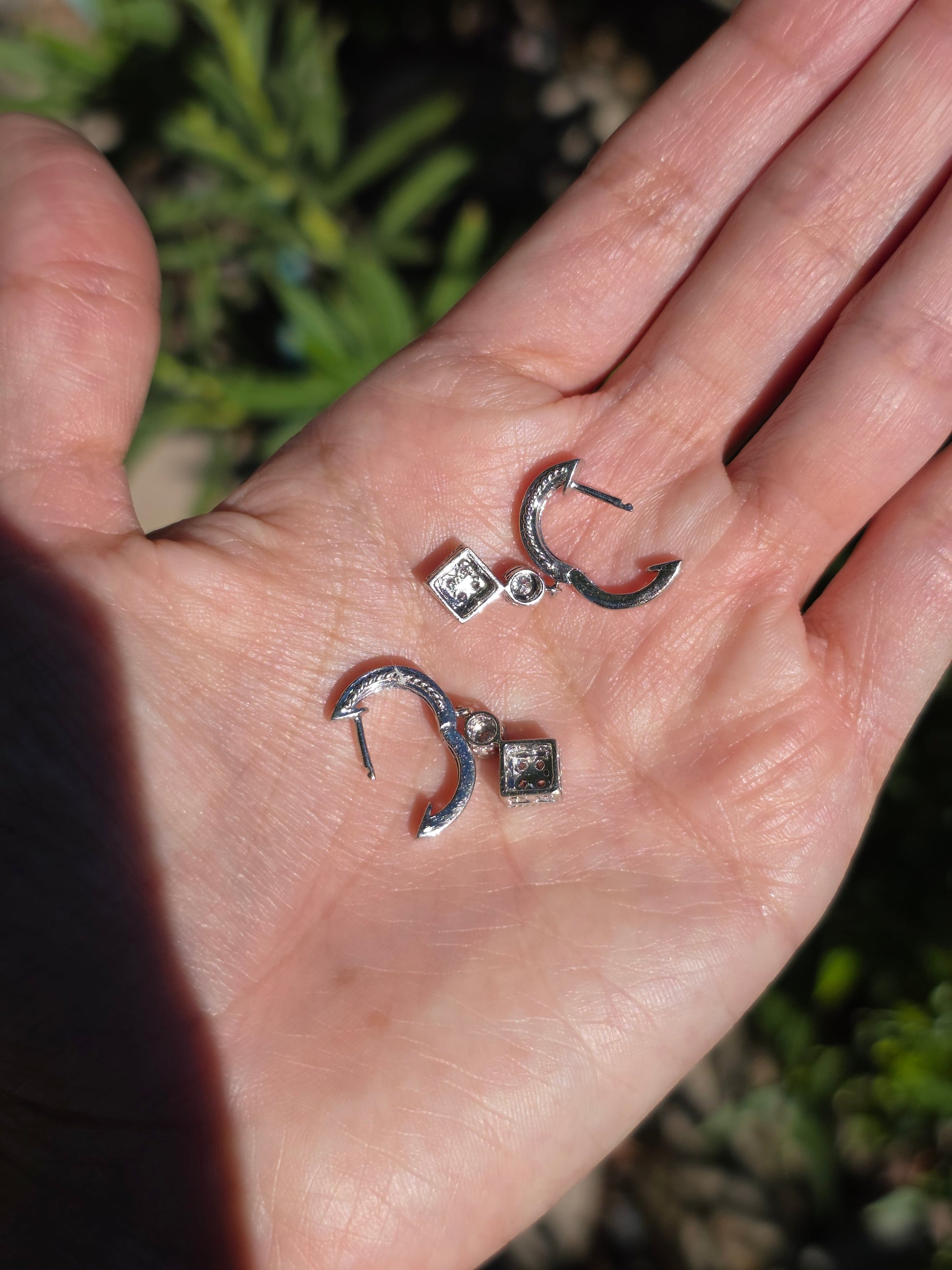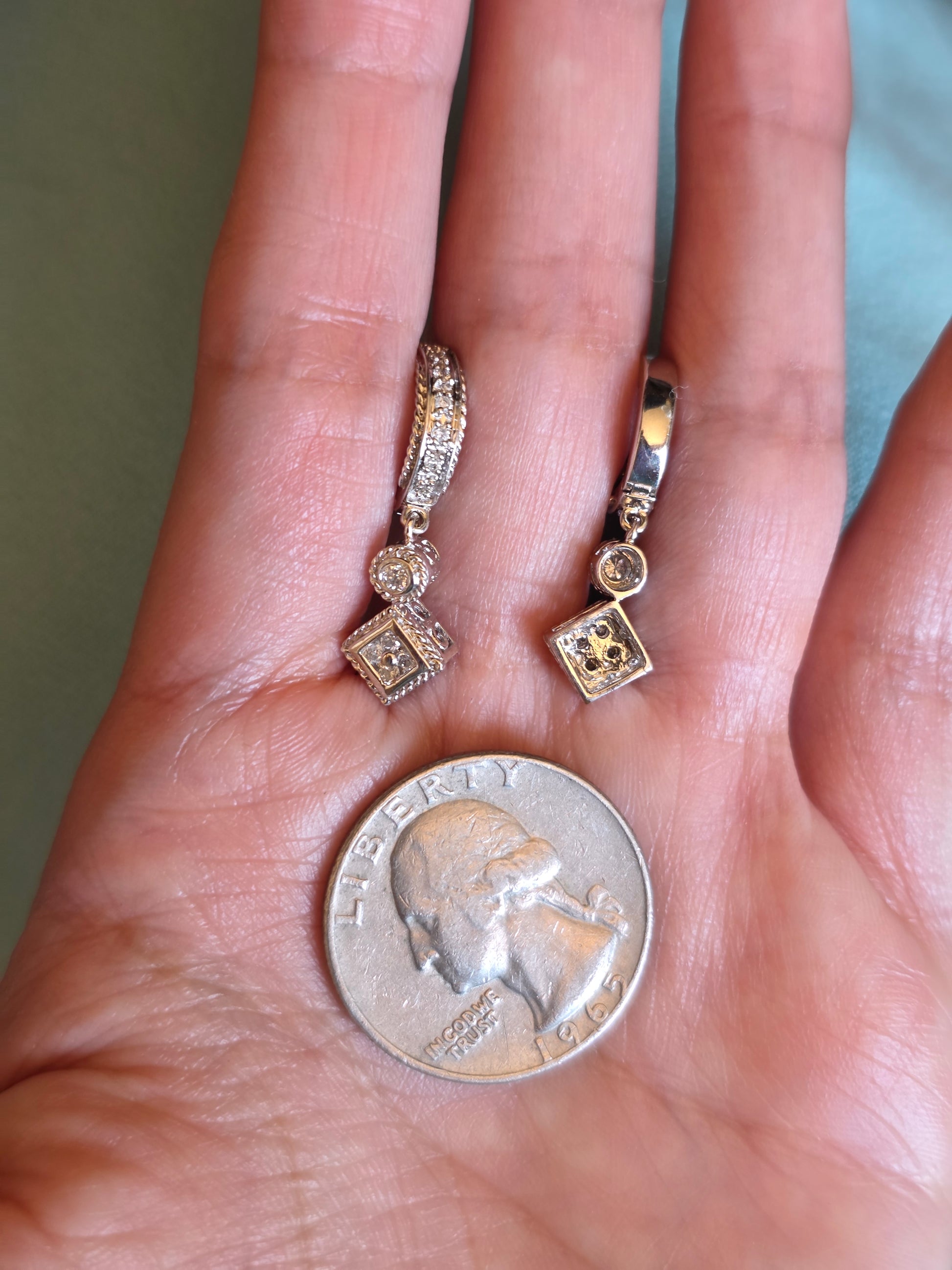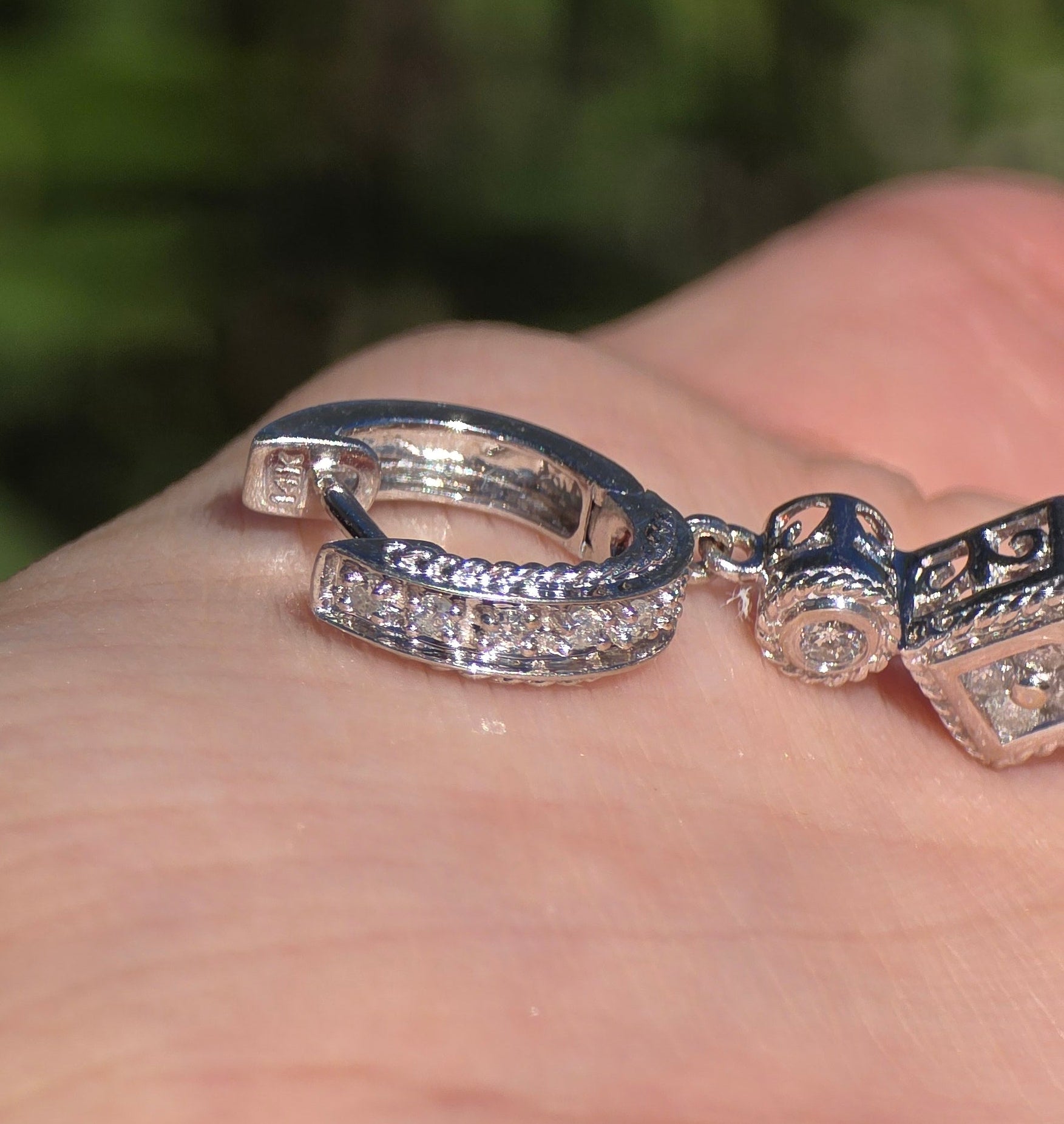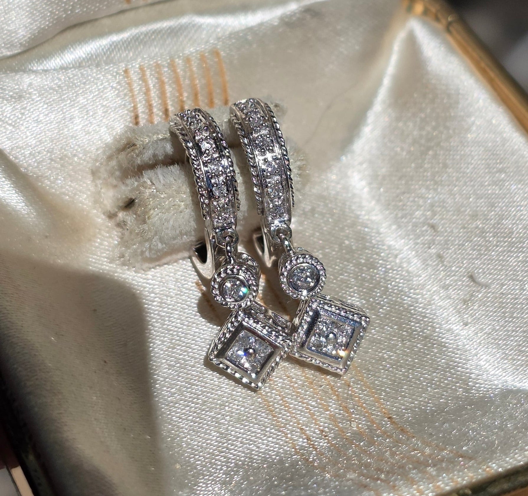 Lovely 14k White Gold Diamond Huggie Drop Dangle Geometric Earrings