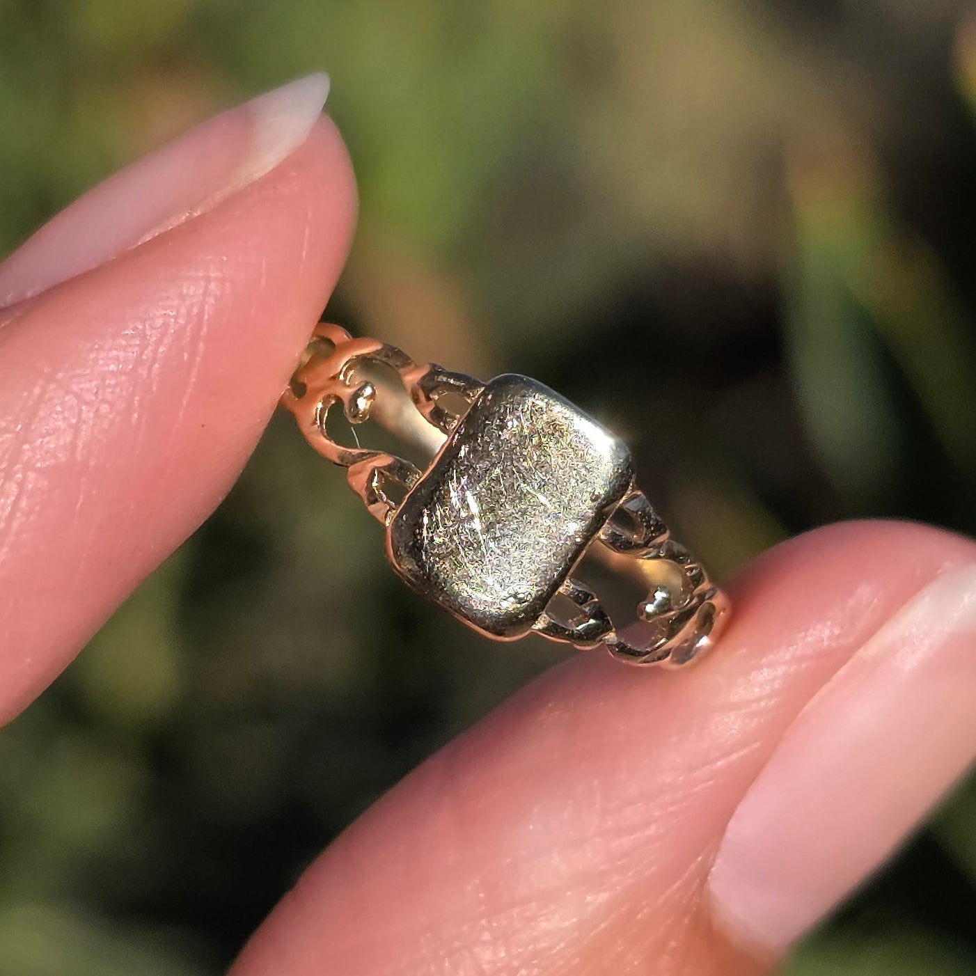 Ring is a size 6.5 and easily sizable (DM for a quote)