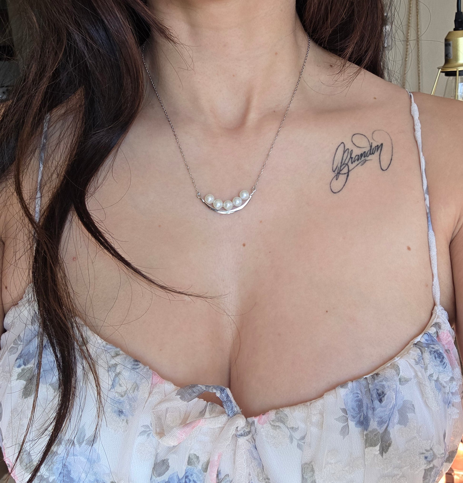 Pretty Sterling Silver Genuine 5 Pearl Necklace 18"
