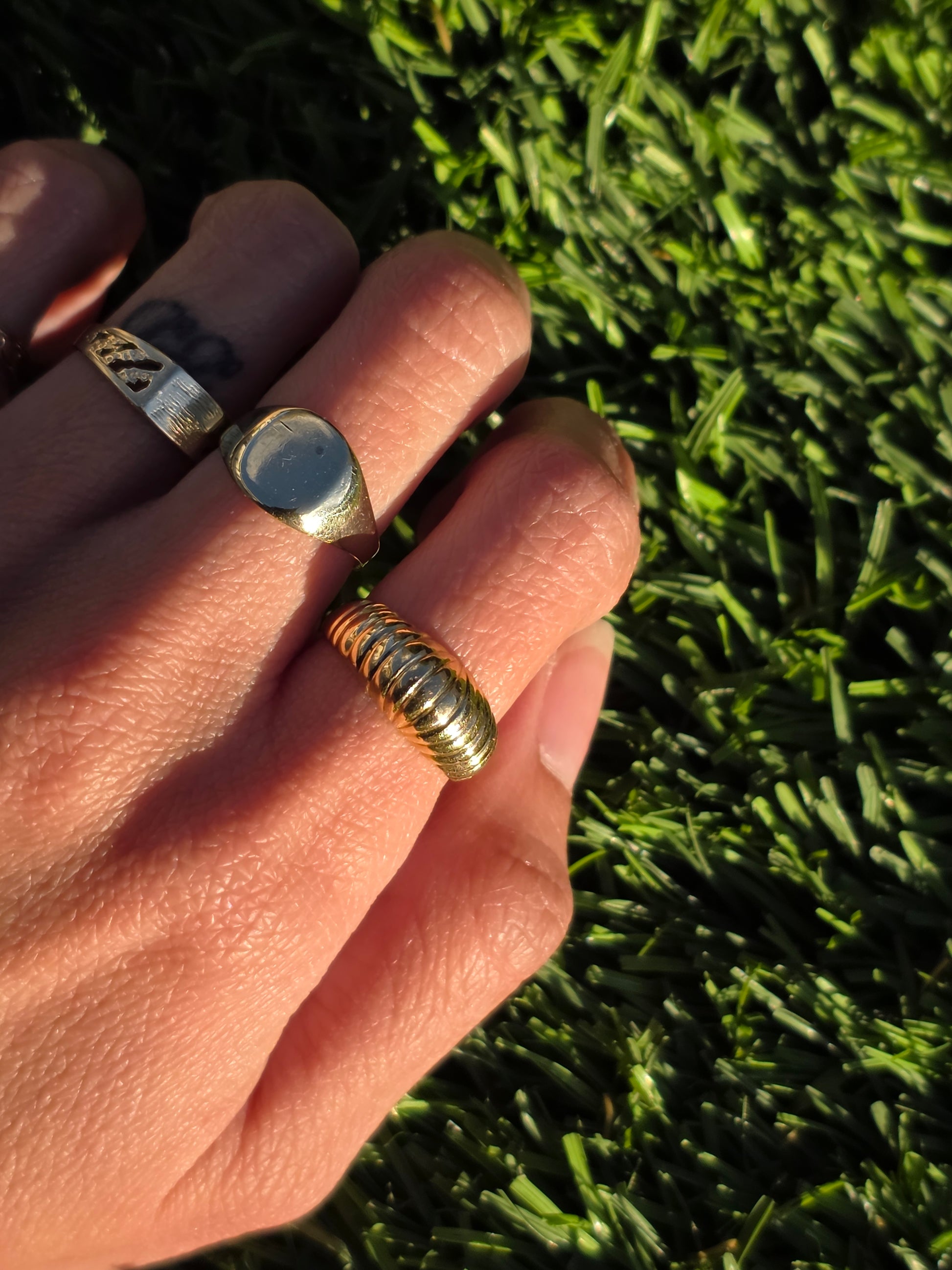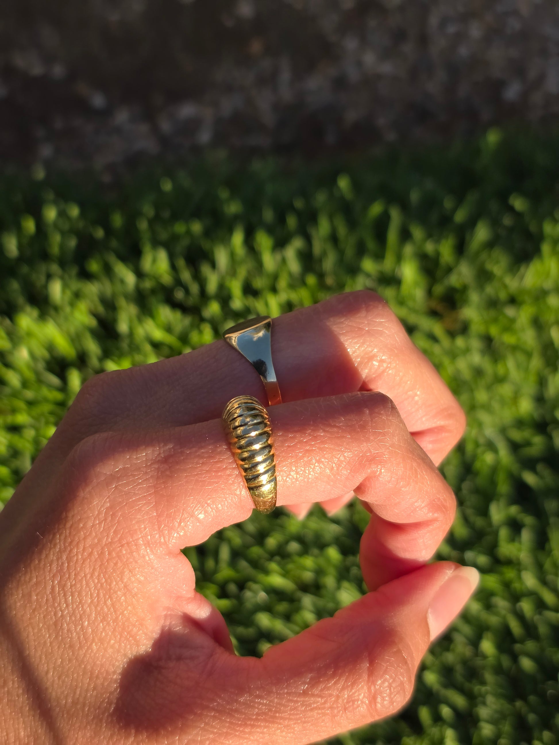 Solid 18k Gold Shrimp / Croissant Domed Ring Size 5.5