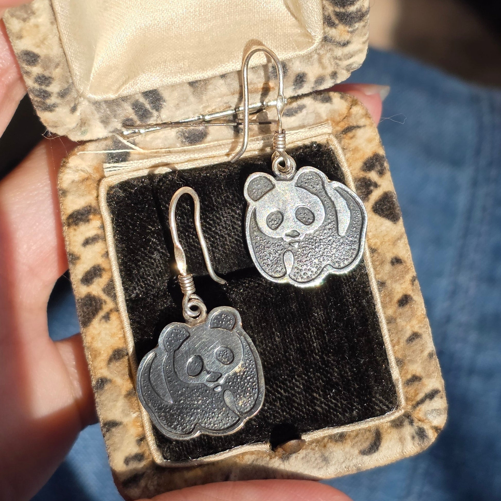 Solid Sterling Silver Panda Bear Dangle Earrings