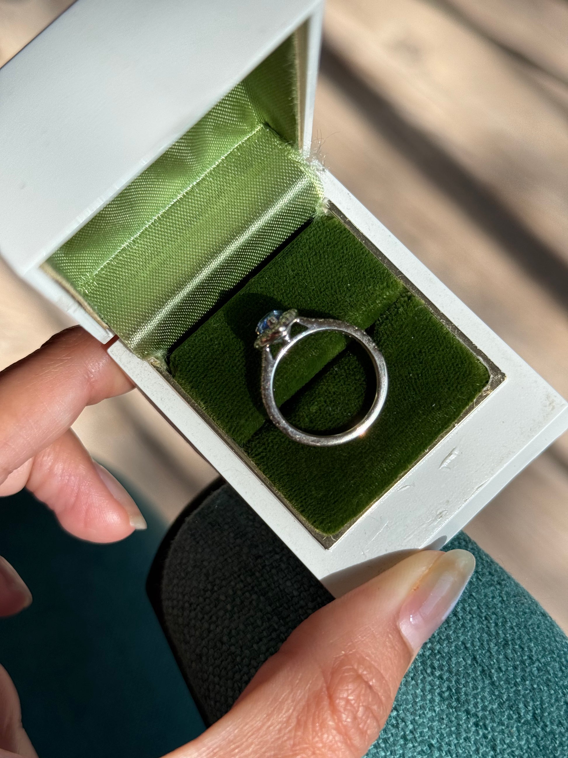 Stunning 1.45tcw Pear Cut Ceylon Sapphire & Diamond Halo 14k White Gold LeVian Ring Size 4.5