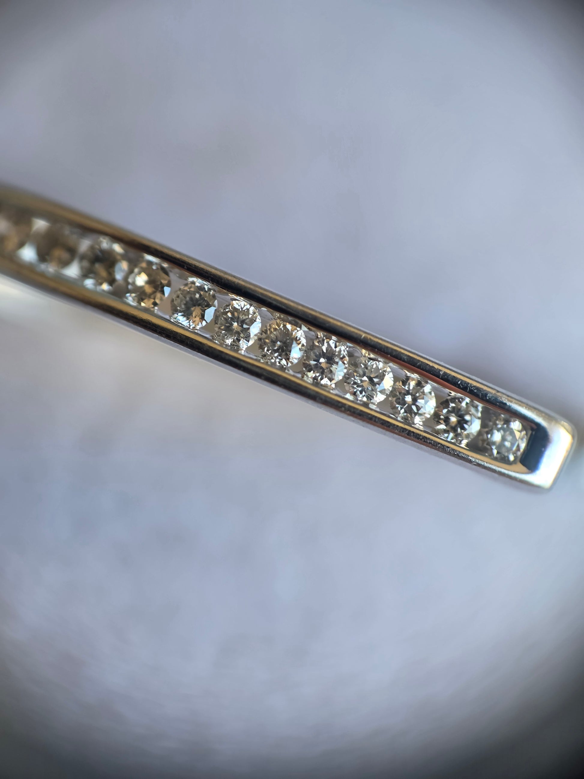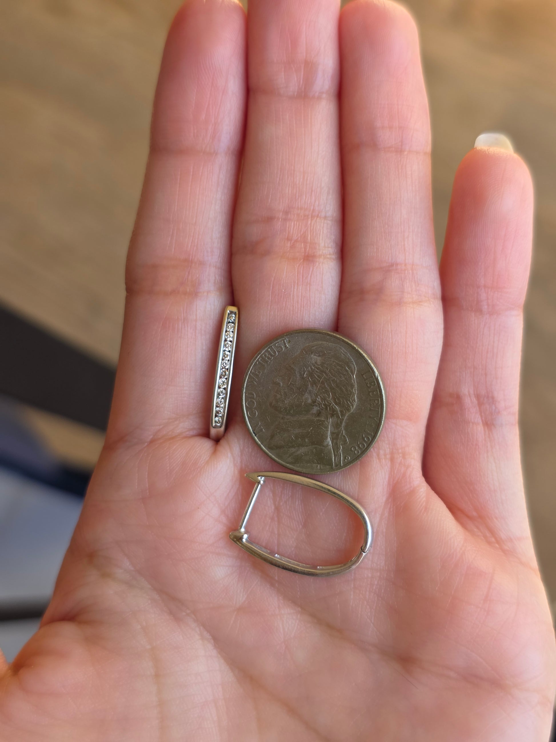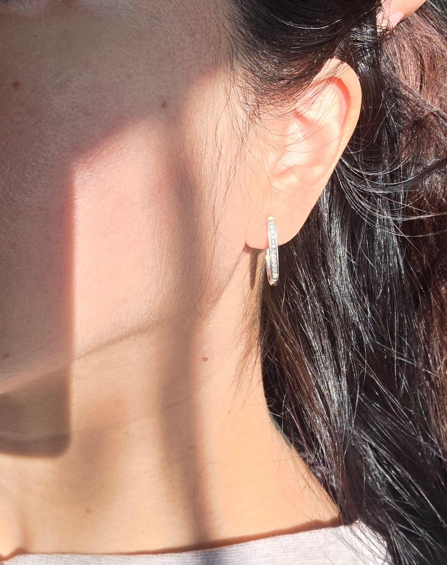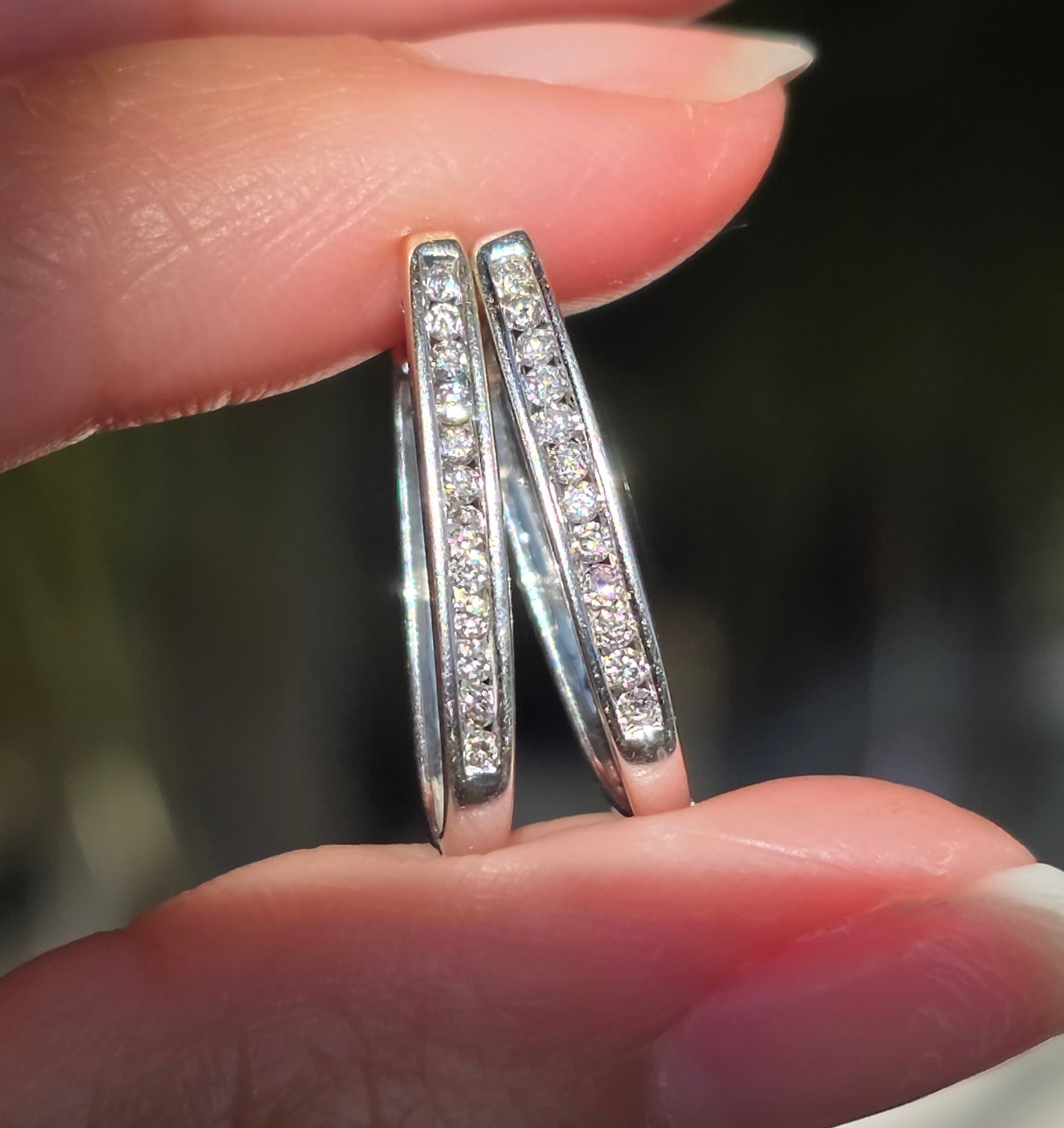 14k White Gold Channel Set Natural Diamond Hoops Earrings