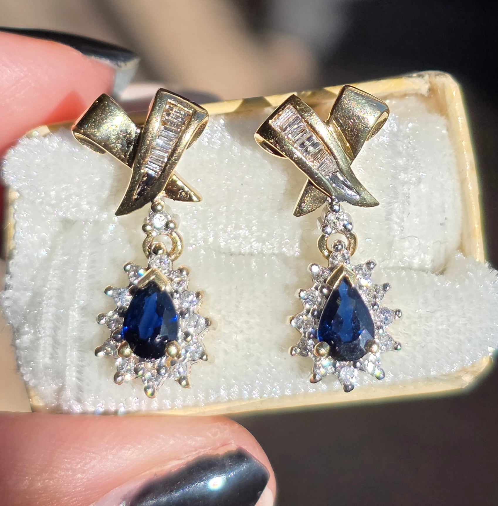 RESERVED- DO NOT BUY: Beautiful 14k Sapphire Diamond Dangle Earrings