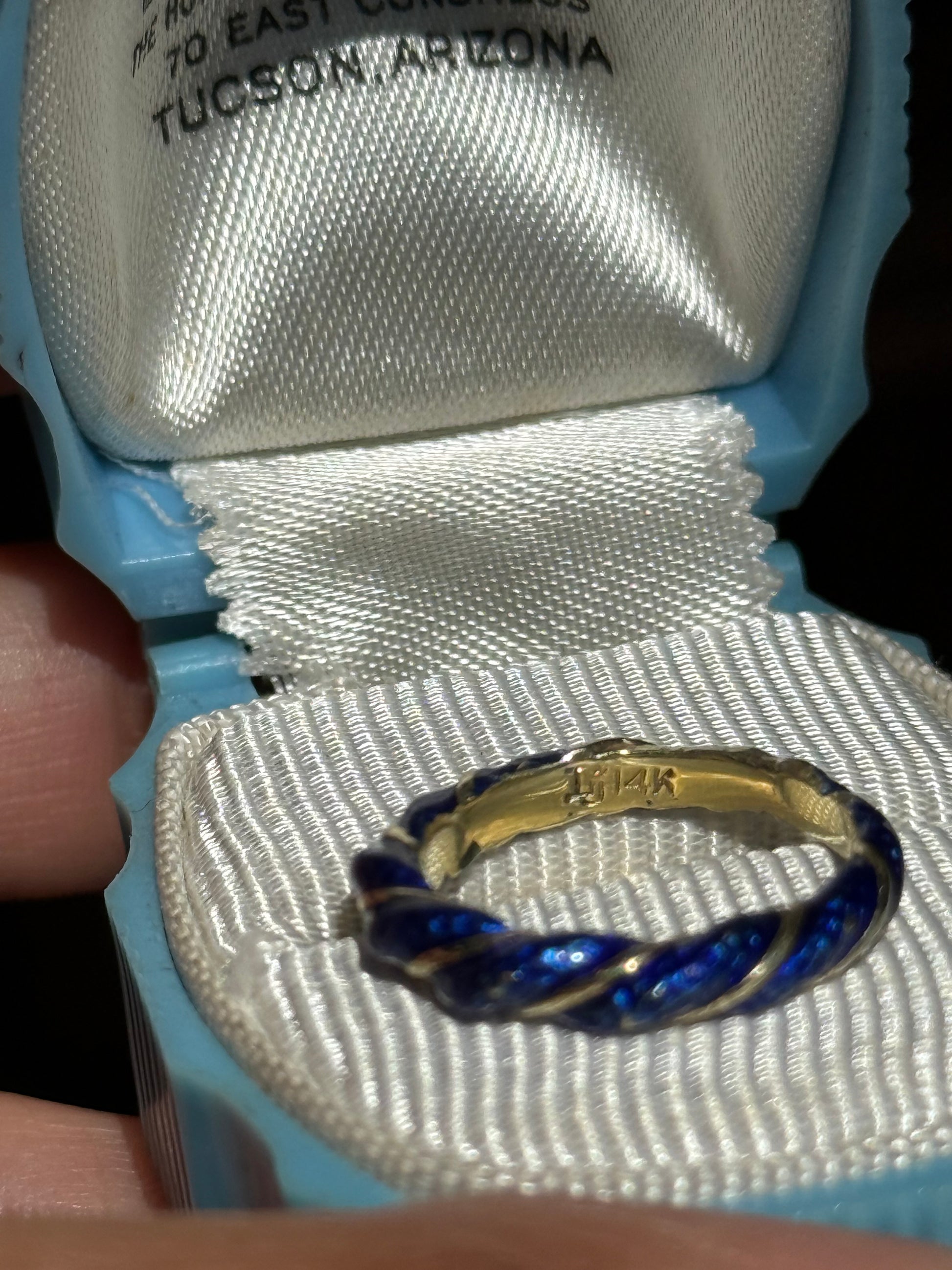 Vintage Twisted Blue Enamel Rope Solid 14k Gold Pinky Ring Size 4